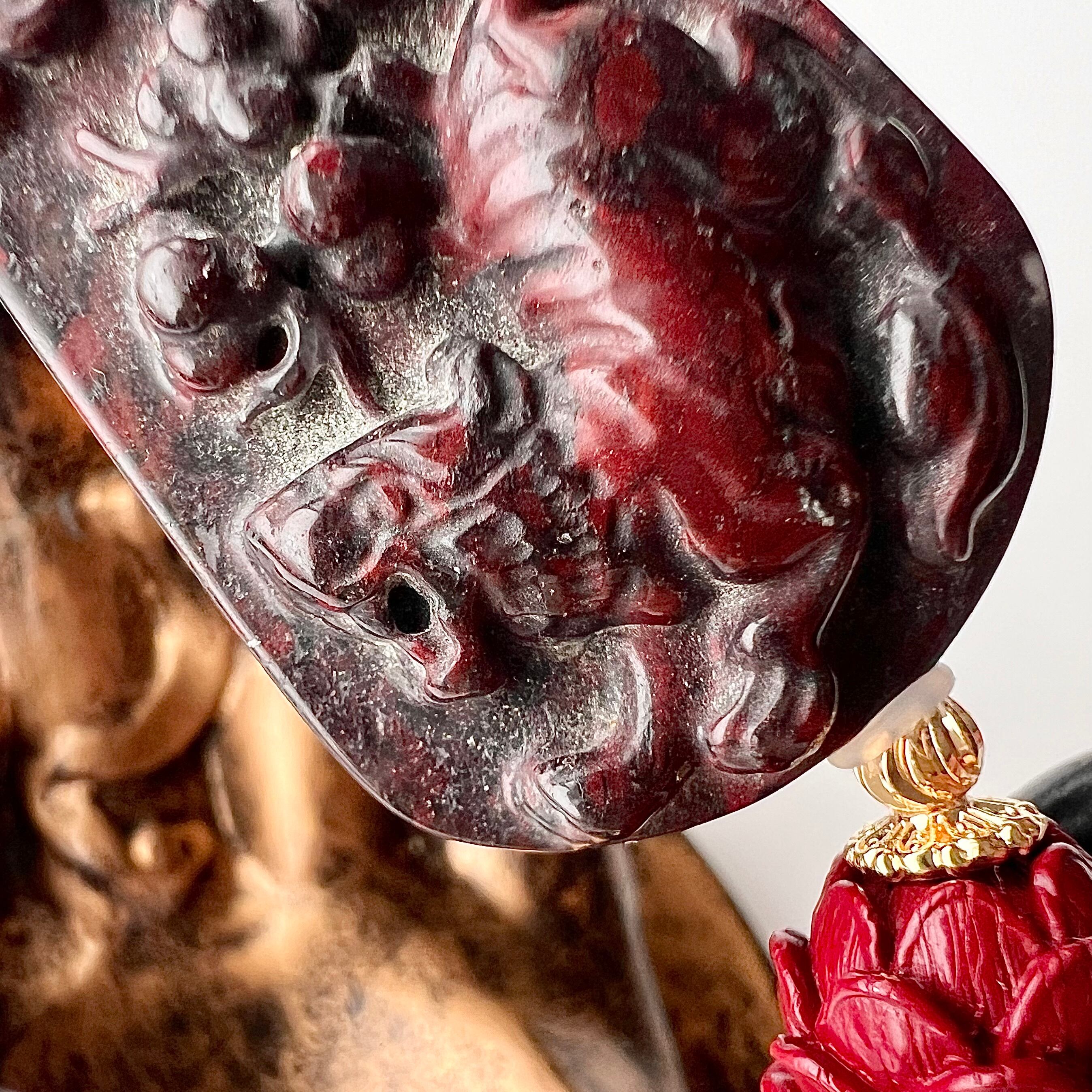 他にも真っ赤な練りシナバーの蓮花やゴールドパーツをあしらい華やかに仕上げました
