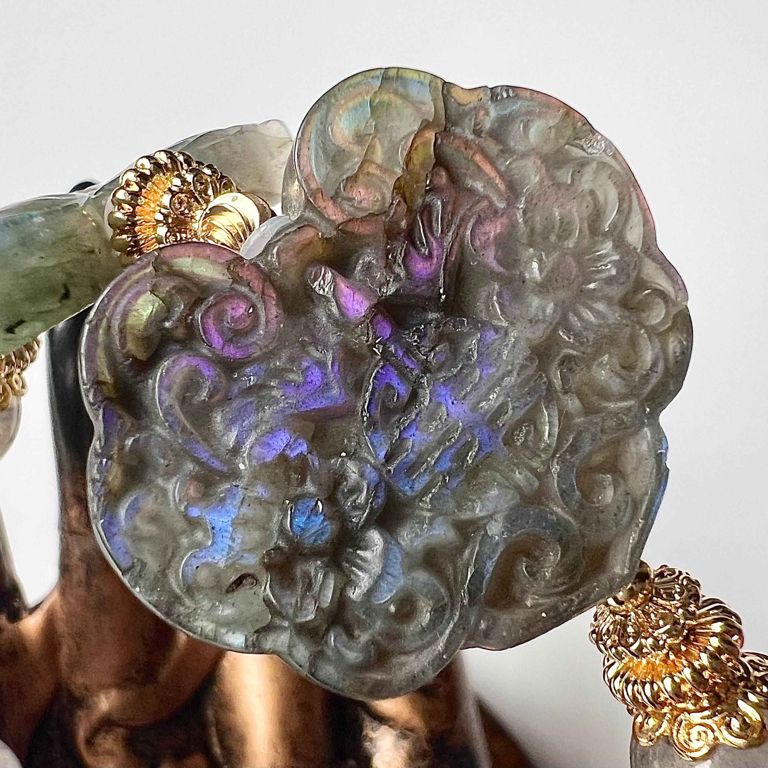 ③ ラブラドライト 如意 蝶 天然石 ブレスレット