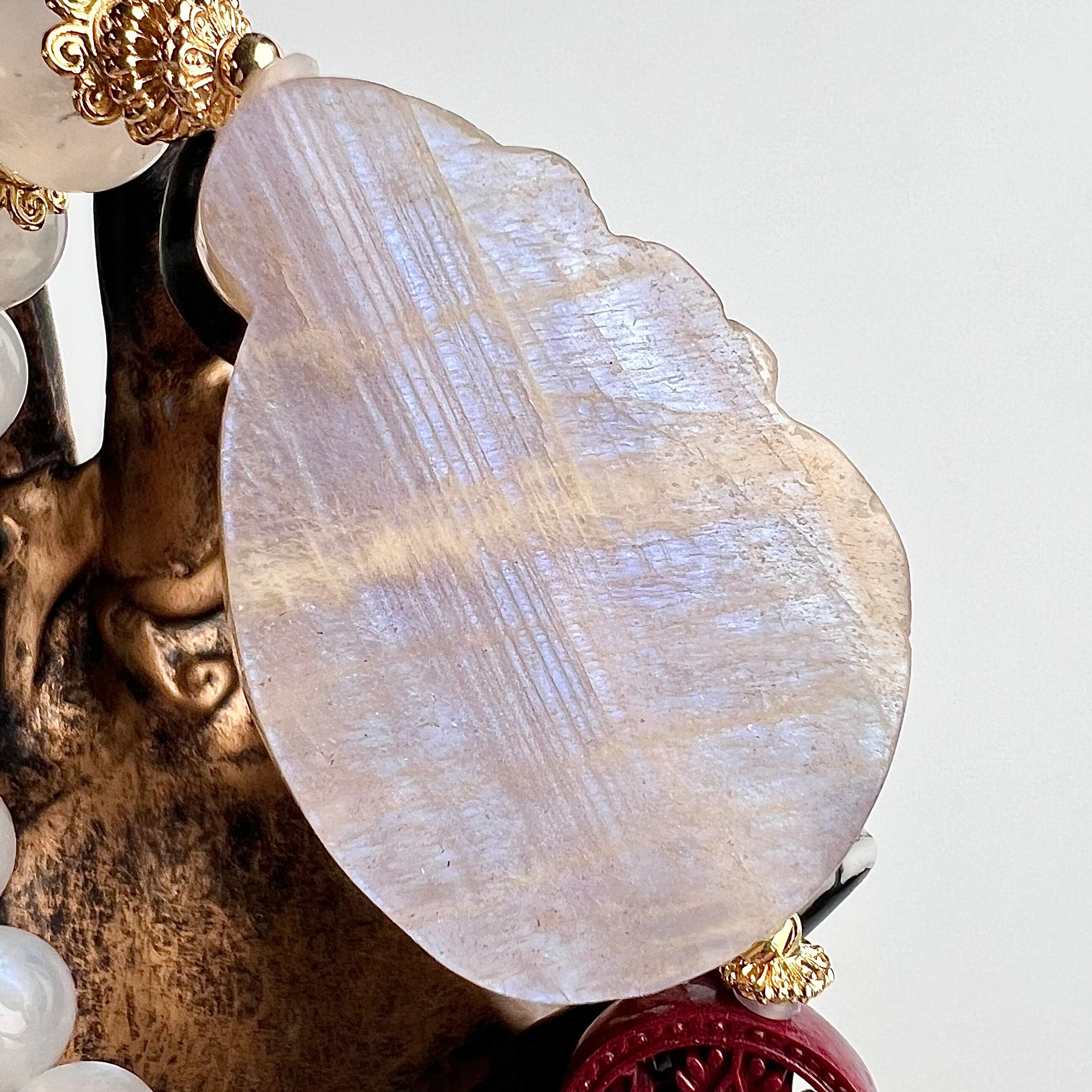 観音様の御手の彫刻が施されたムーンストーンデザインブレスレットです