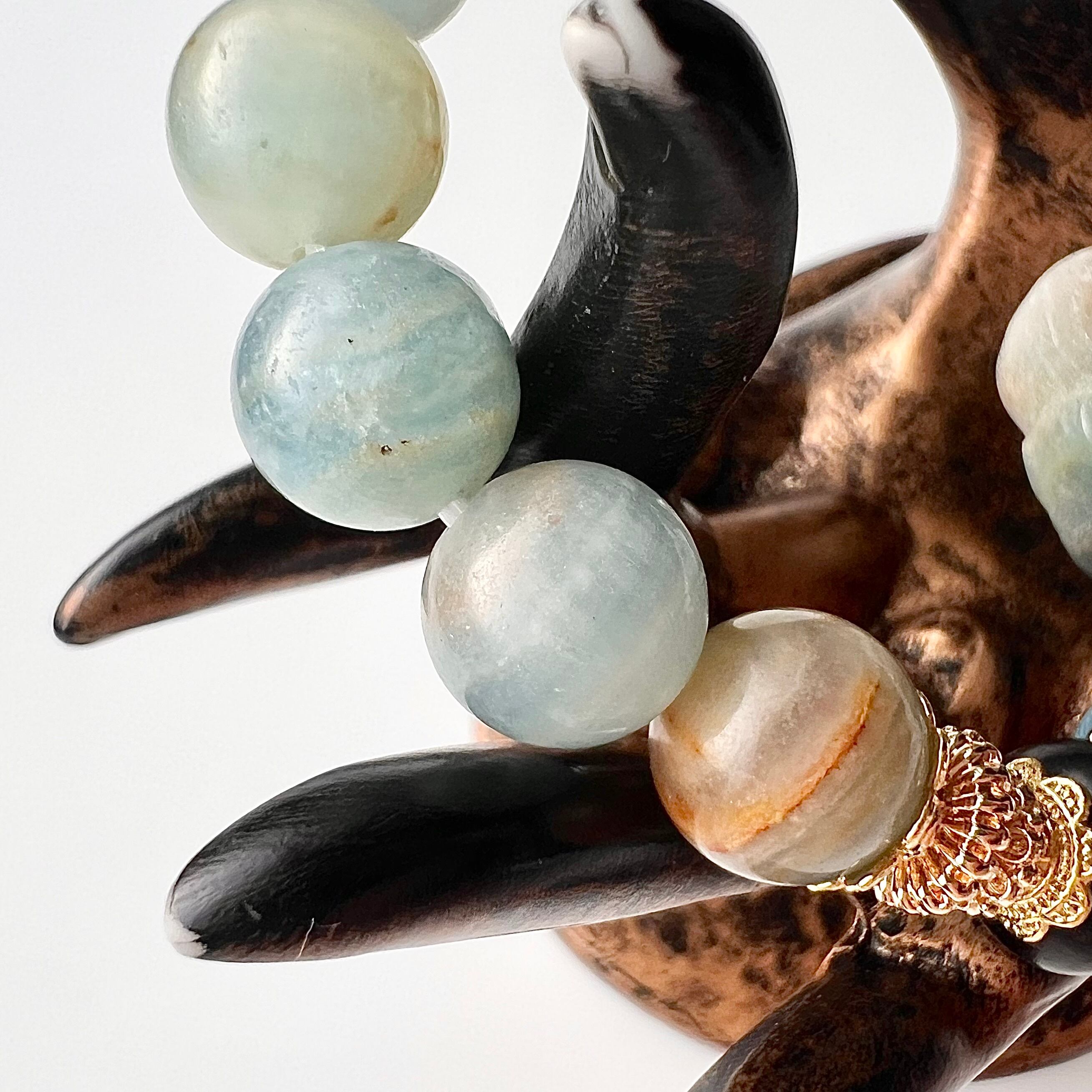 トロレアイト 透かし彫り ブルーカルサイト 天然石 ブレスレット
