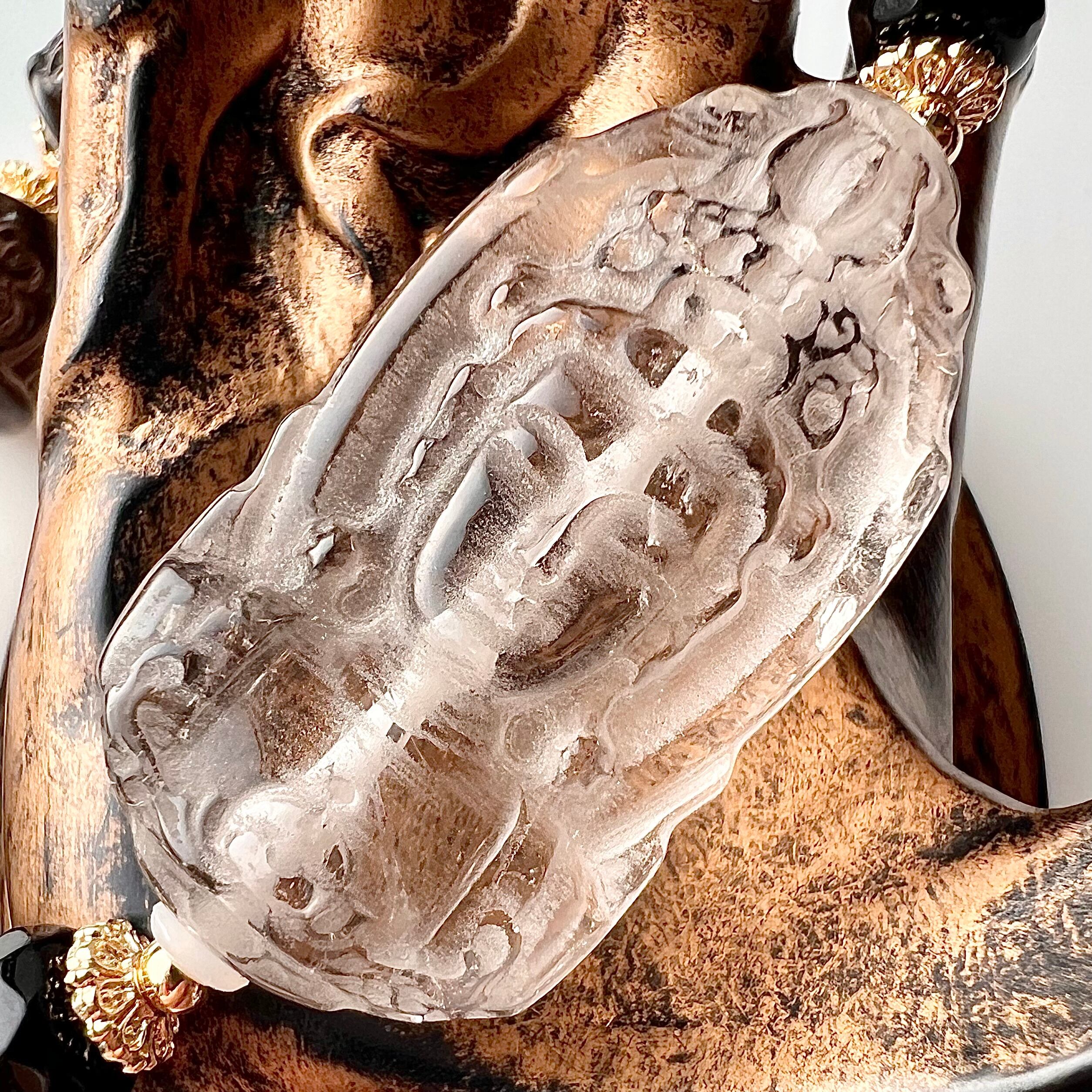 水晶の観音様とアイスオブシディアンの回紋珠デザインブレスレットです