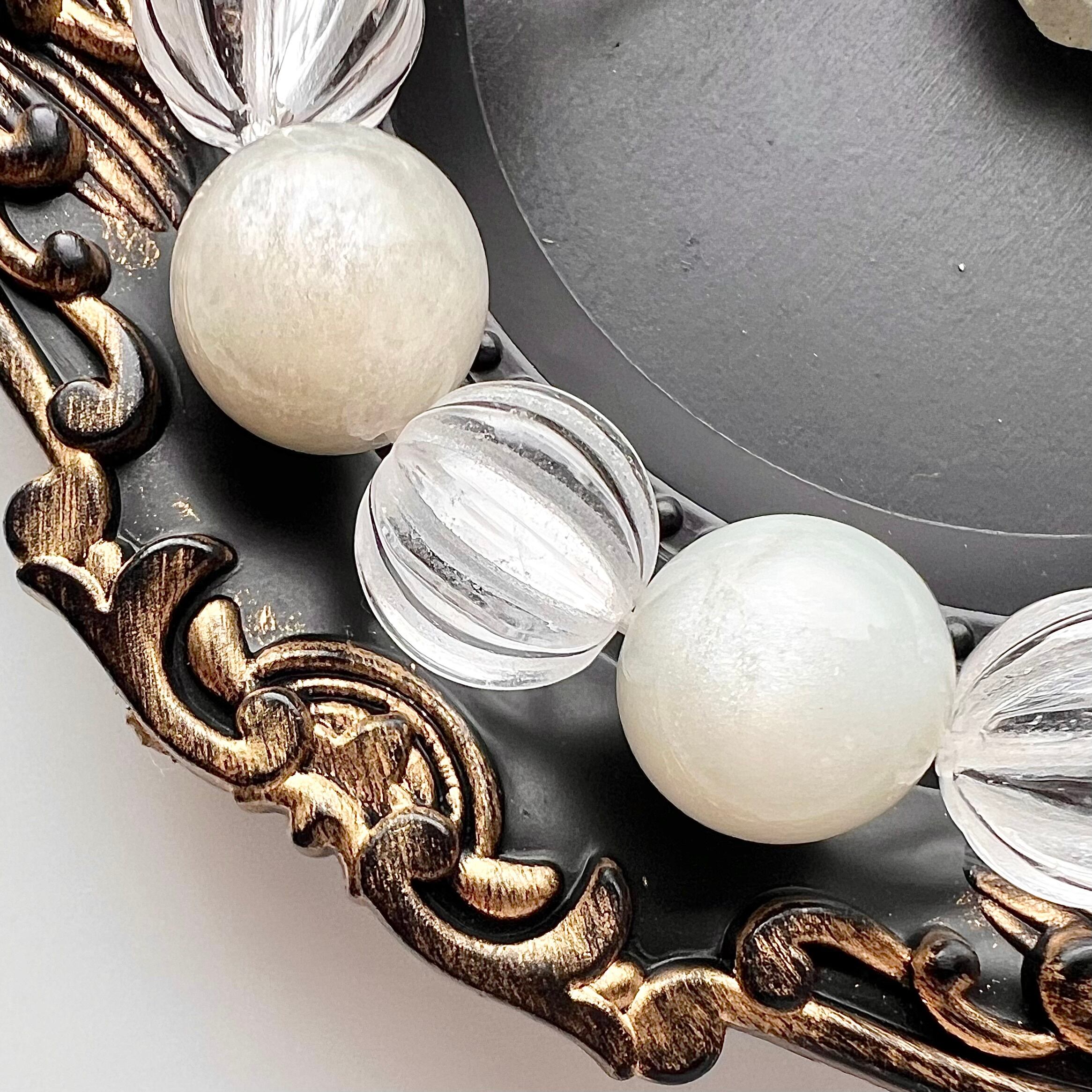 ブレス部分はホワイトムーンストーンと水晶のラインカットを交互に並べました