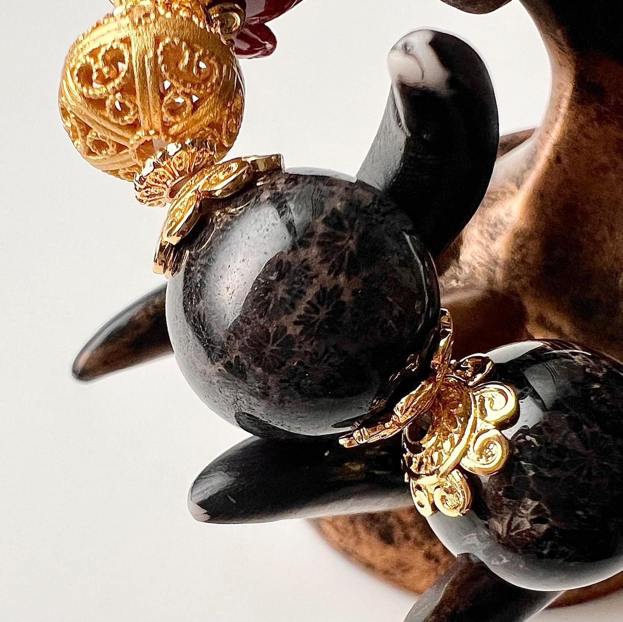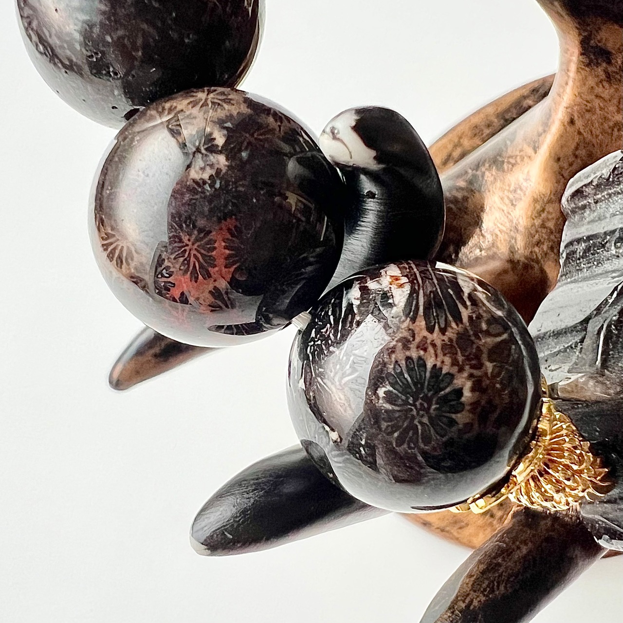 ブレス部分は大玉ブラックフォッシルコーラルを使用