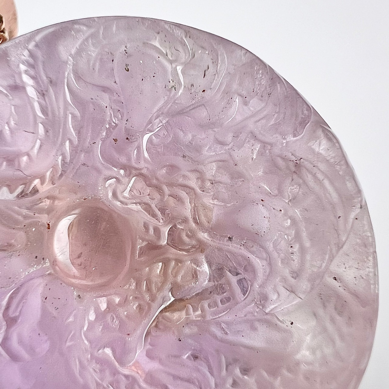 ほど良いサイズの彫刻ですので、大きなモチーフや大玉が苦手な方でも身につけていただけそうです