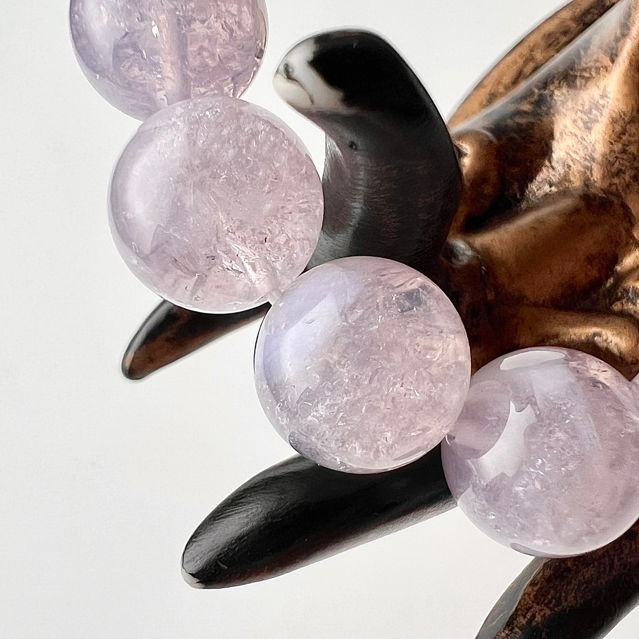 他にもアクセントとしてローズクォーツのボタンカットやゴールドパーツをあしらいました