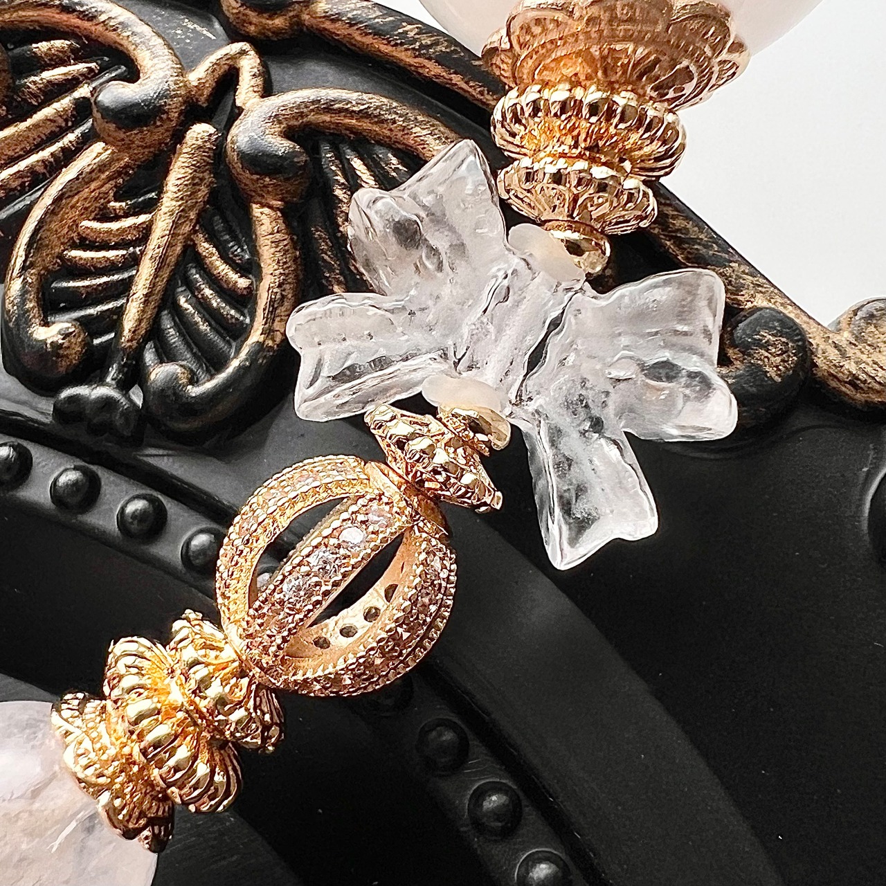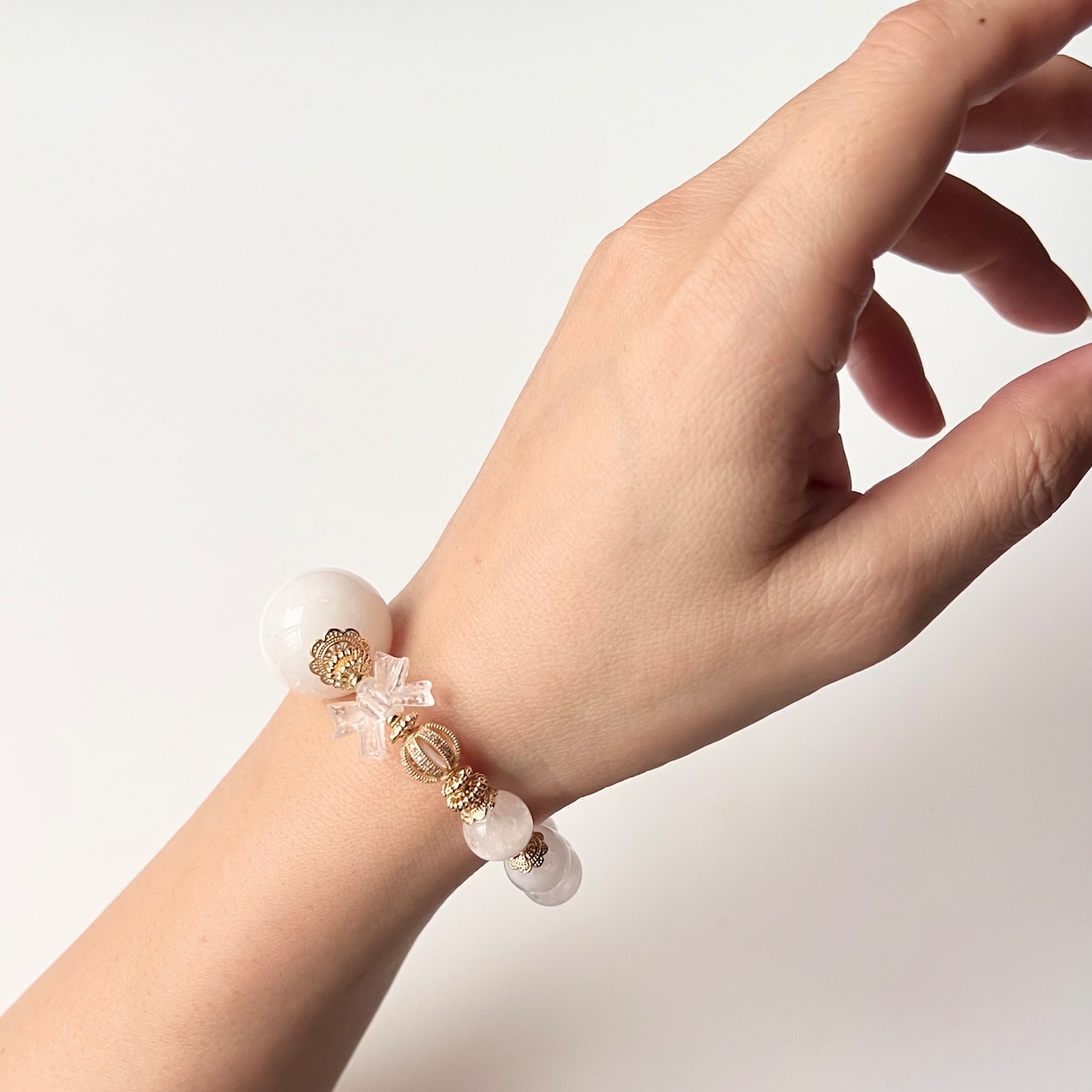 ホワイトガーデンクォーツ 水晶 リボン 天然石 ブレスレット
