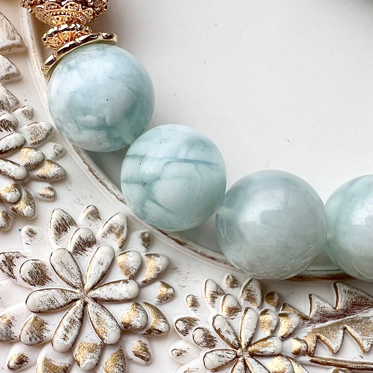こちらはミルキータイプのアクアマリンで、薄雲を思わせるクラウディ状になった玉もあります