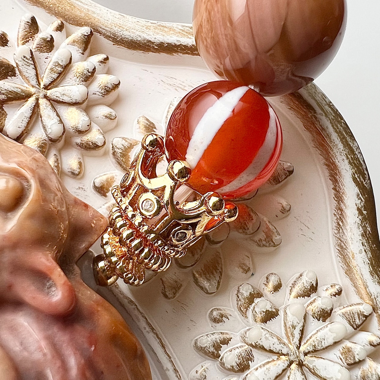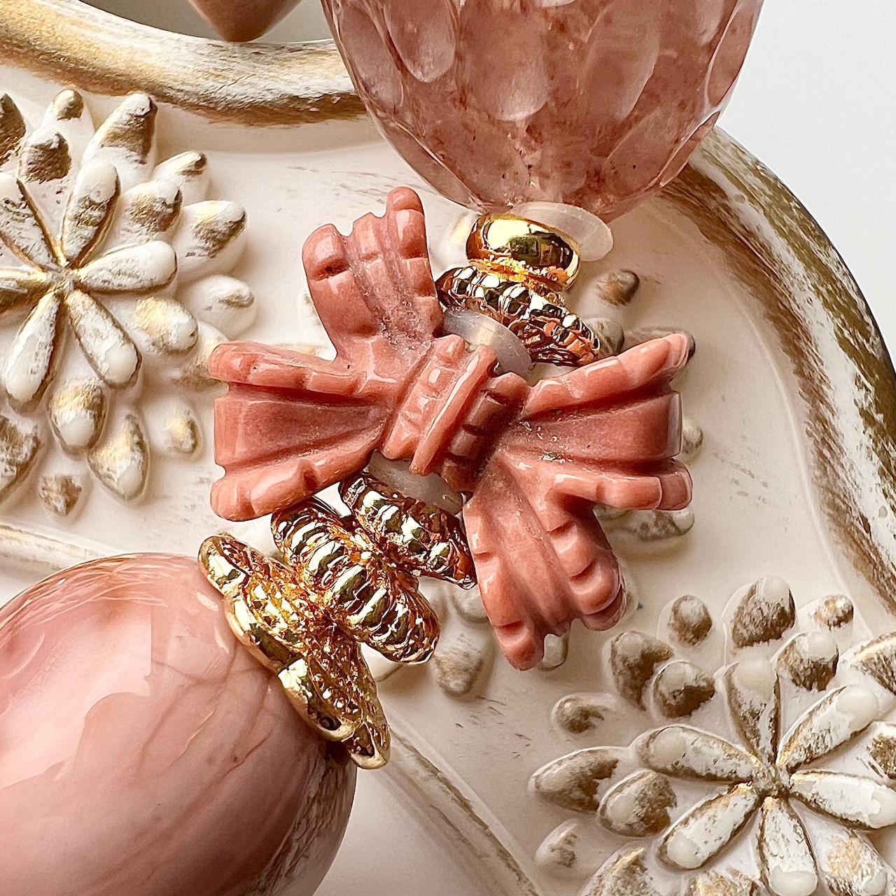他にも王冠のゴールドパーツやピンクアラシャン瑪瑙のリボンなどをあしらい華やかに仕上げました