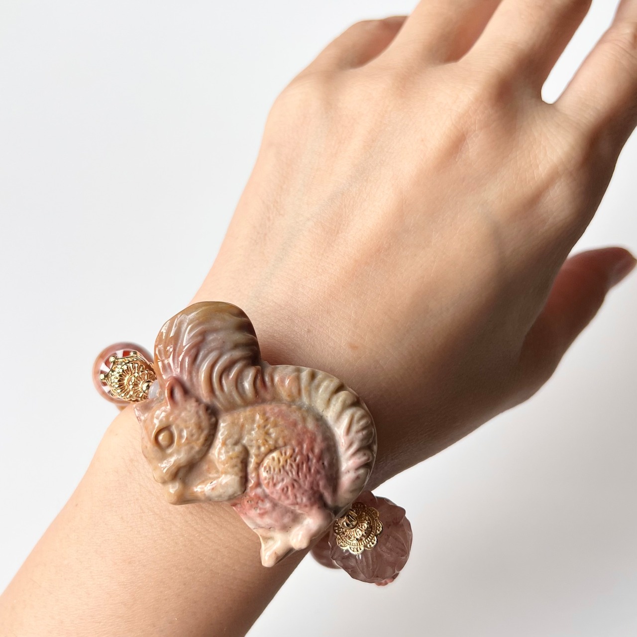 ふと手首を見ると気持ちを上げてくれそうな、アラシャン瑪瑙のカラーリングとリスのモチーフがたまりません