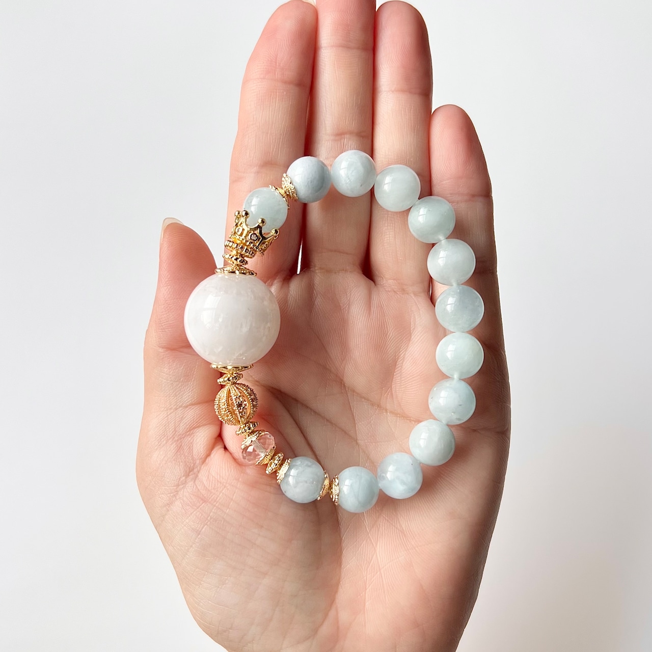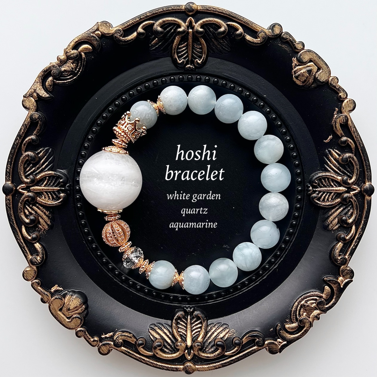 ホワイトガーデンクォーツとアクアマリンのデザインブレスレットです