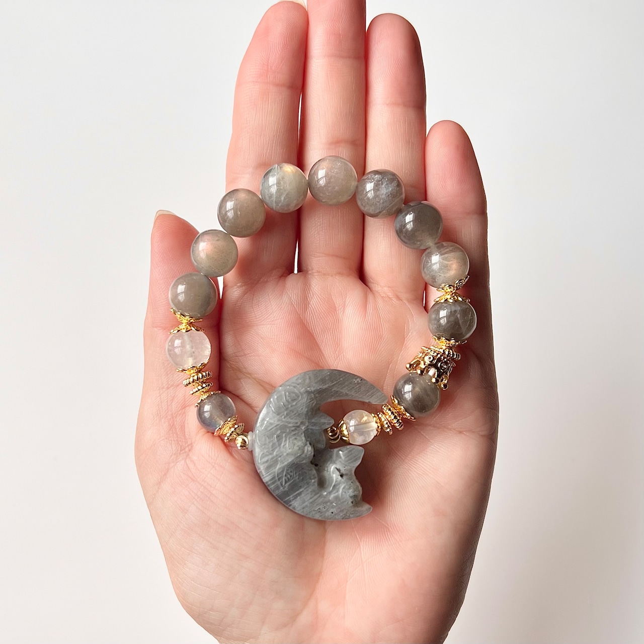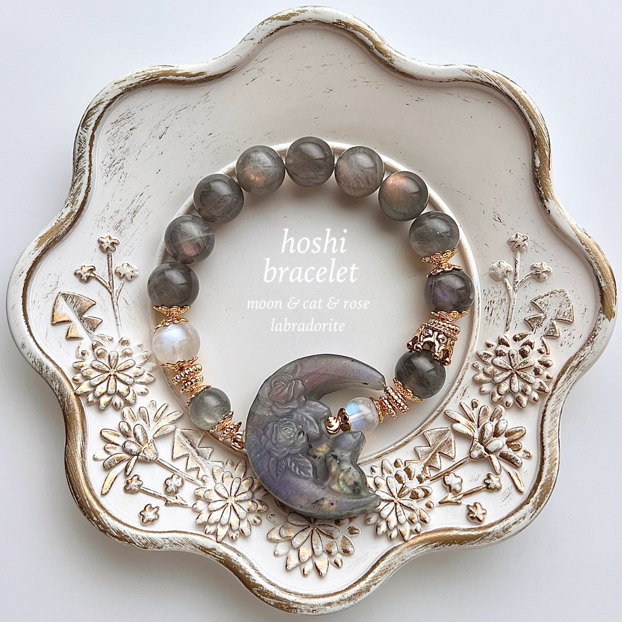 ラブラドライト 三日月 猫 薔薇 ムーンストーン 天然石 ブレスレット
