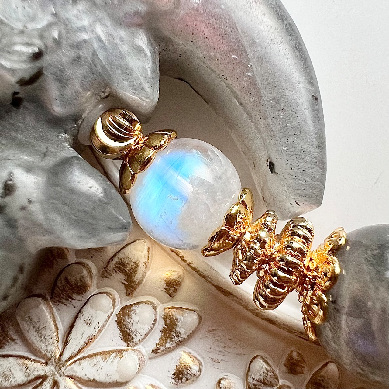 三日月にちなみ、月光に見立てたムーンストーンも2粒混ぜてみました