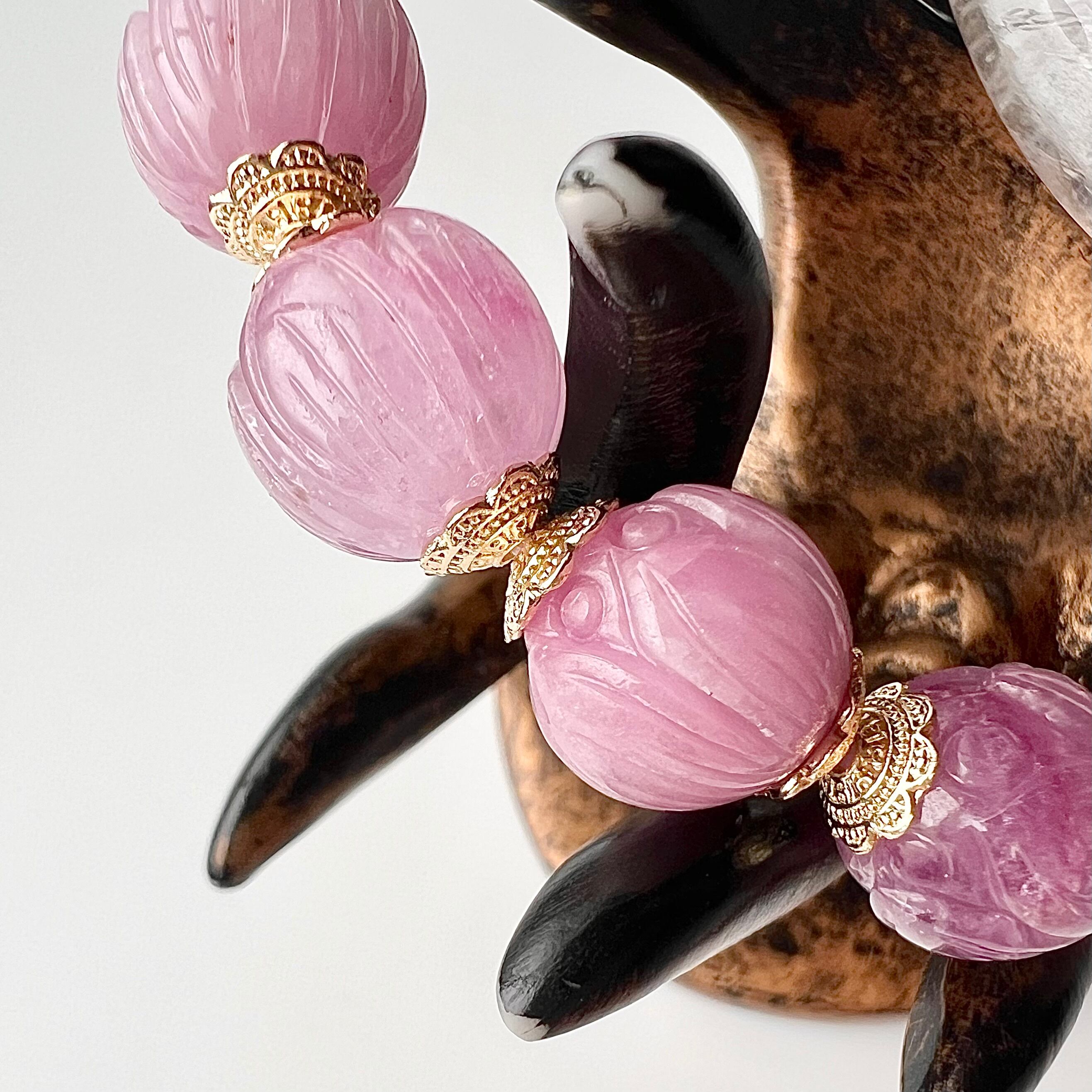ブレス部分は蓮の花の蕾が彫られたクンツァイトを使用