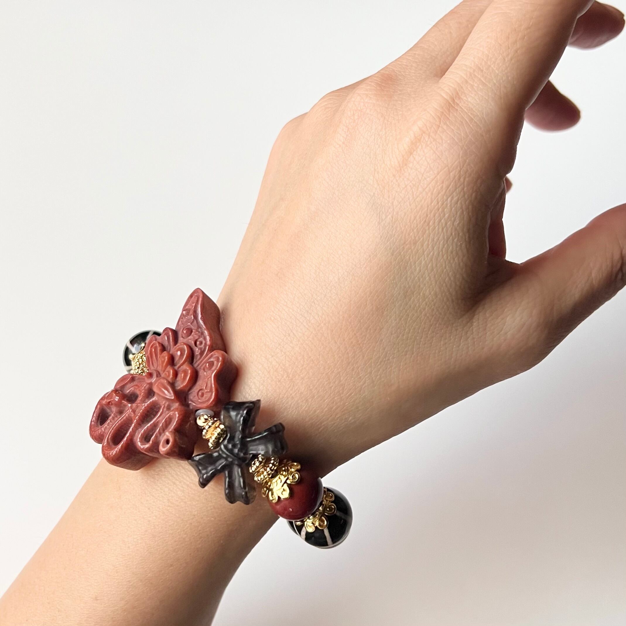 蝶々と蛇のアラシャン瑪瑙デザインブレスレットです