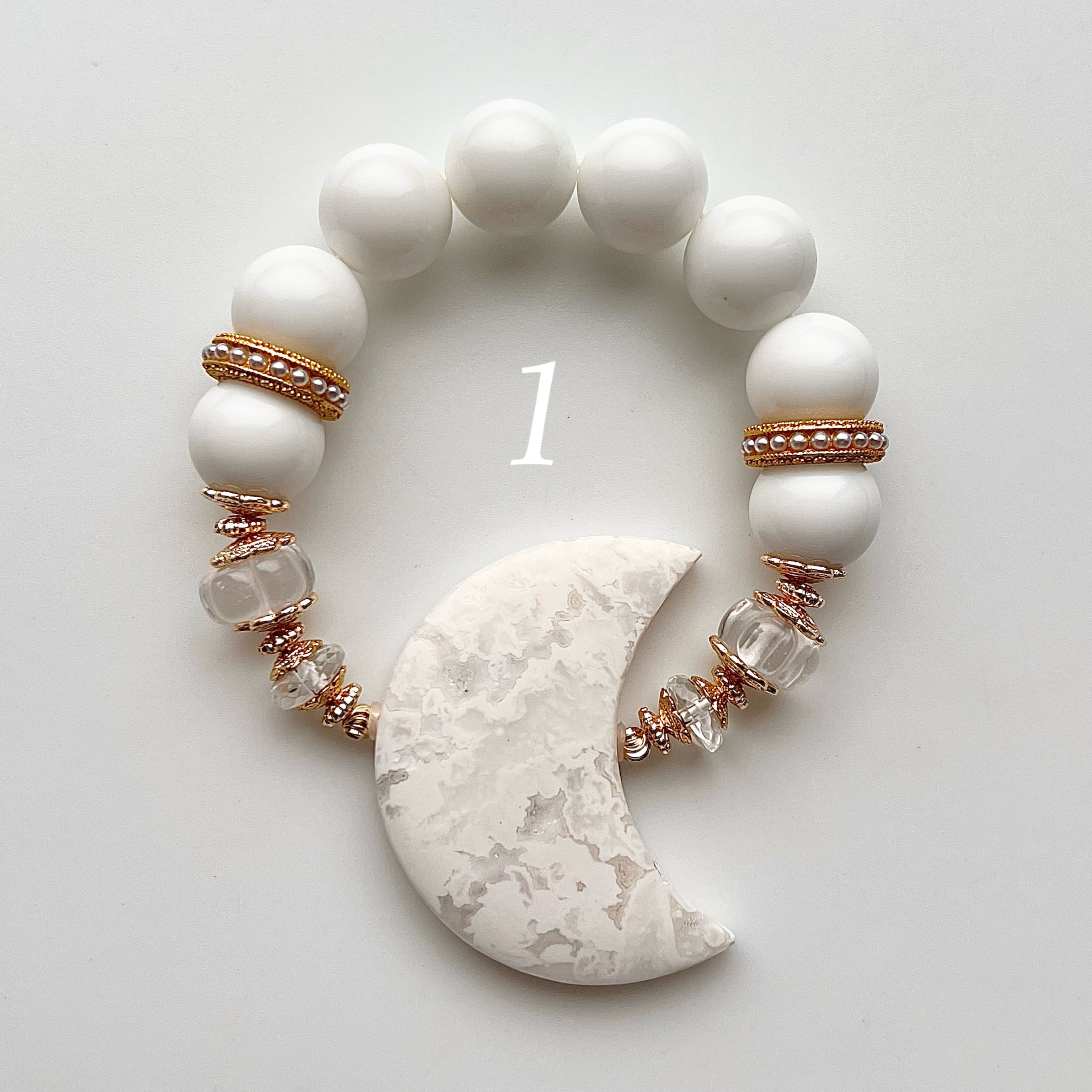 ホワイトアゲートの大きな三日月デザインブレスレットです