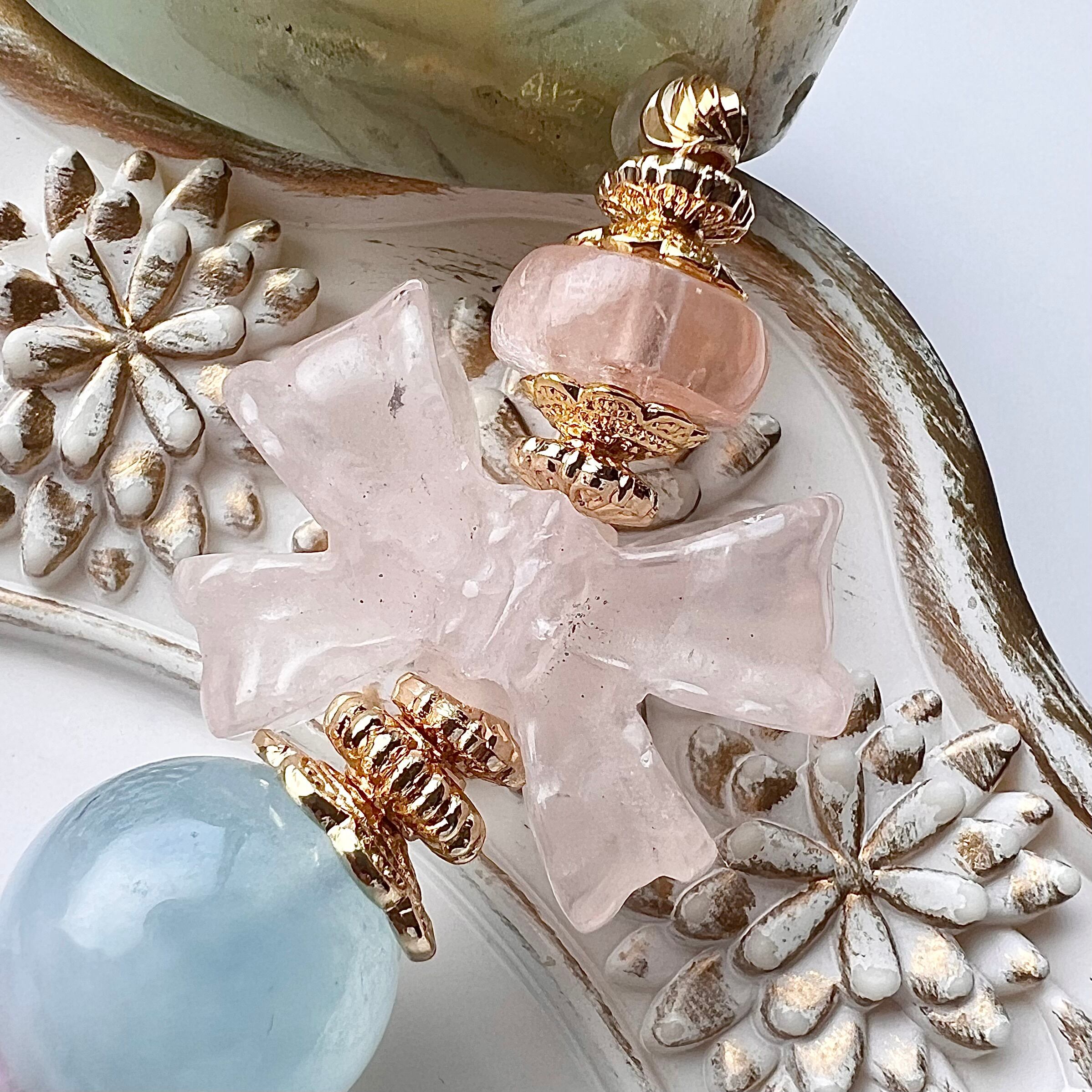 他にもローズクォーツの大きなリボンや王冠のゴールドパーツをあしらい華やかに仕上げました