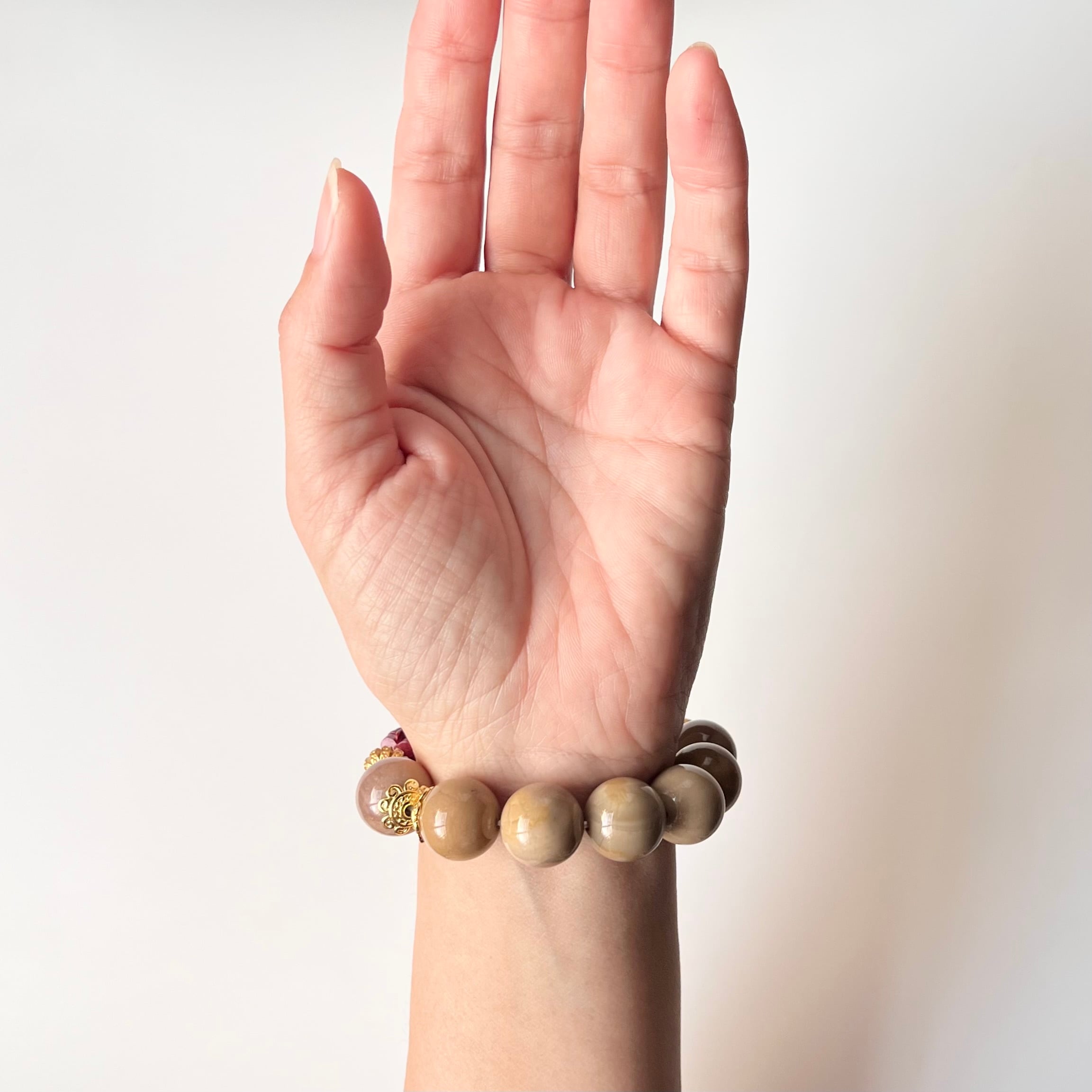 デンドリティックアゲートのラウンド型スライスとアラシャン瑪瑙のデザインブレスレットです