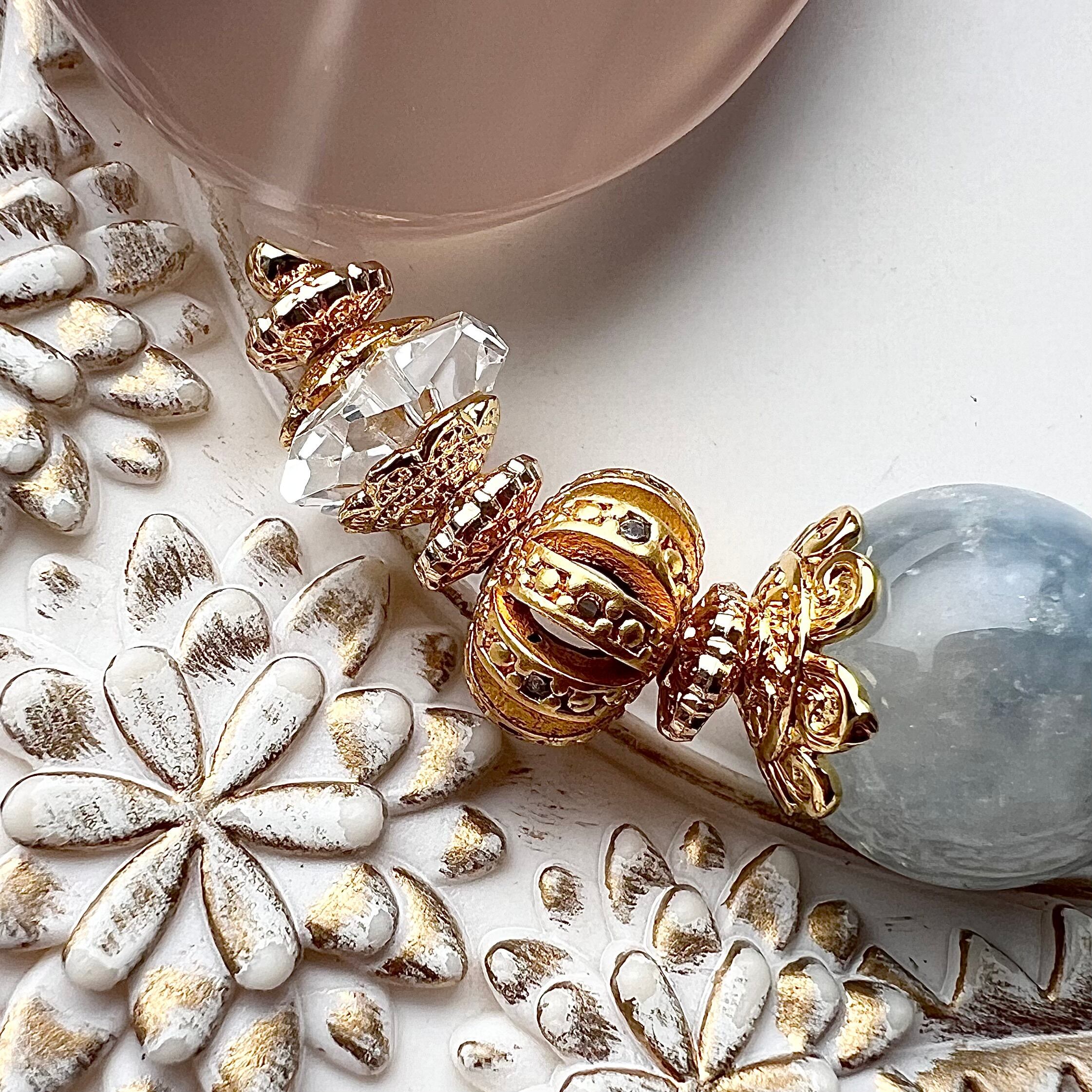 他にもアクセントとして水晶のボタンカットやゴールドパーツをあしらいました