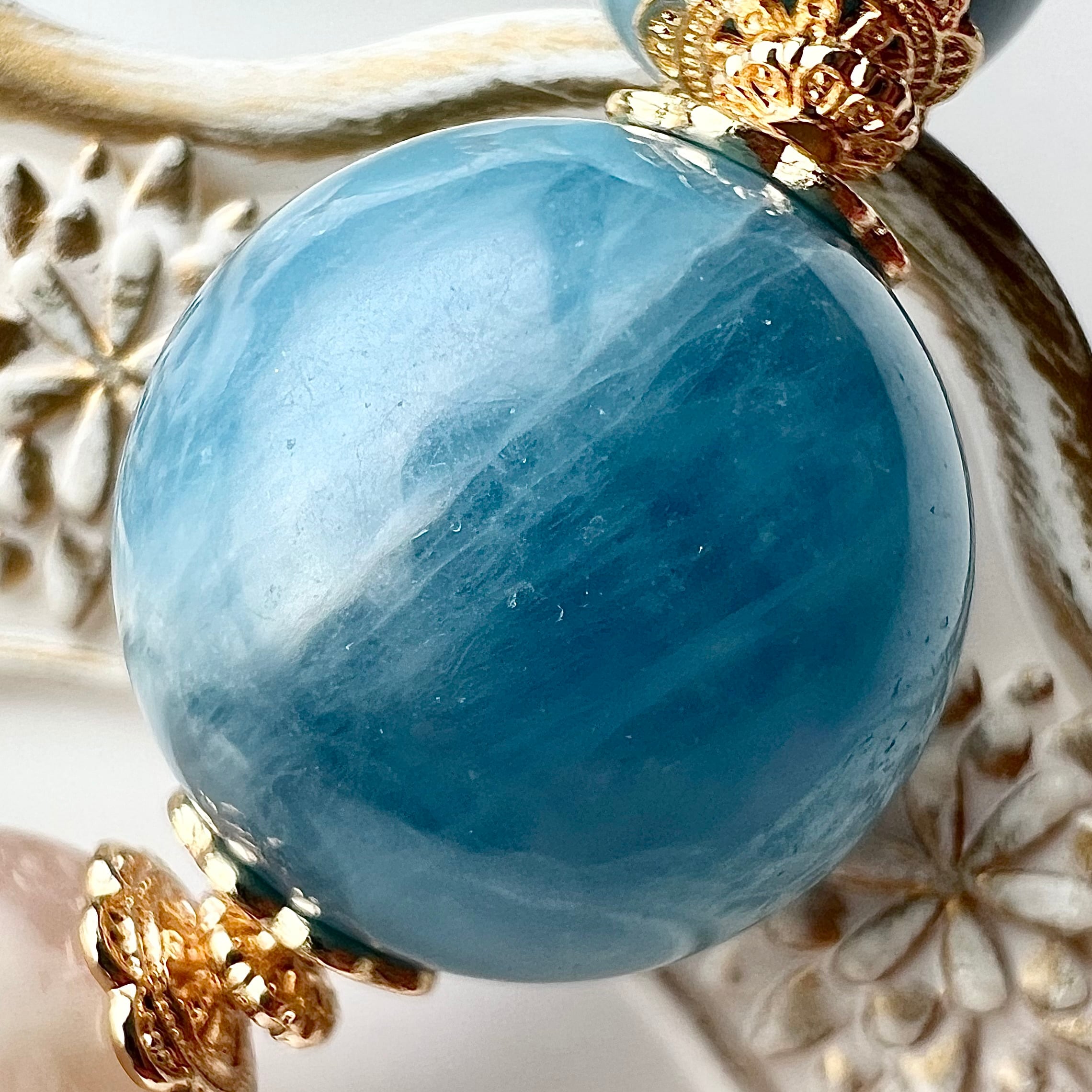 アクアマリンやアイリスクォーツがお好きな方、大玉ブレスがお好きな方いかがでしょうか