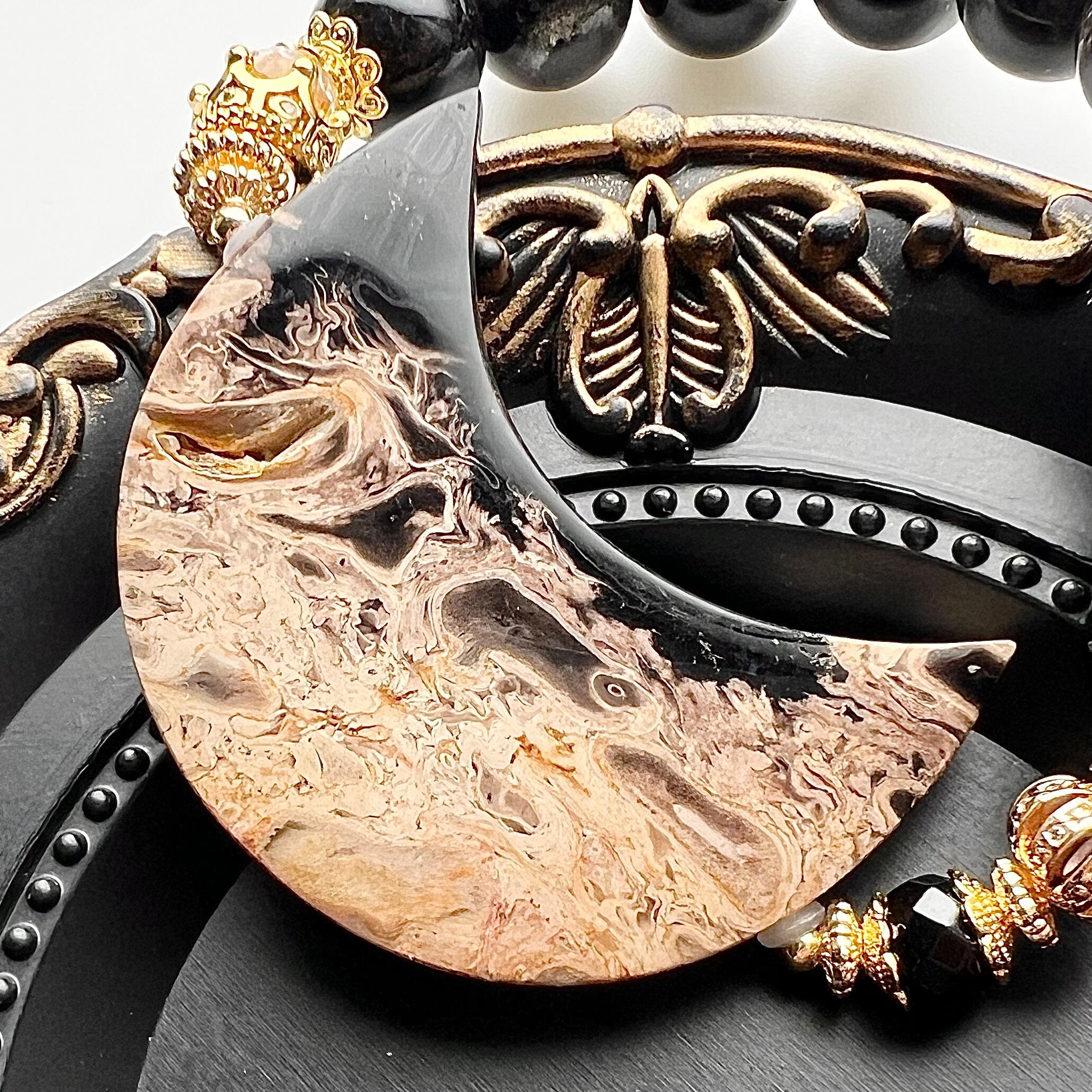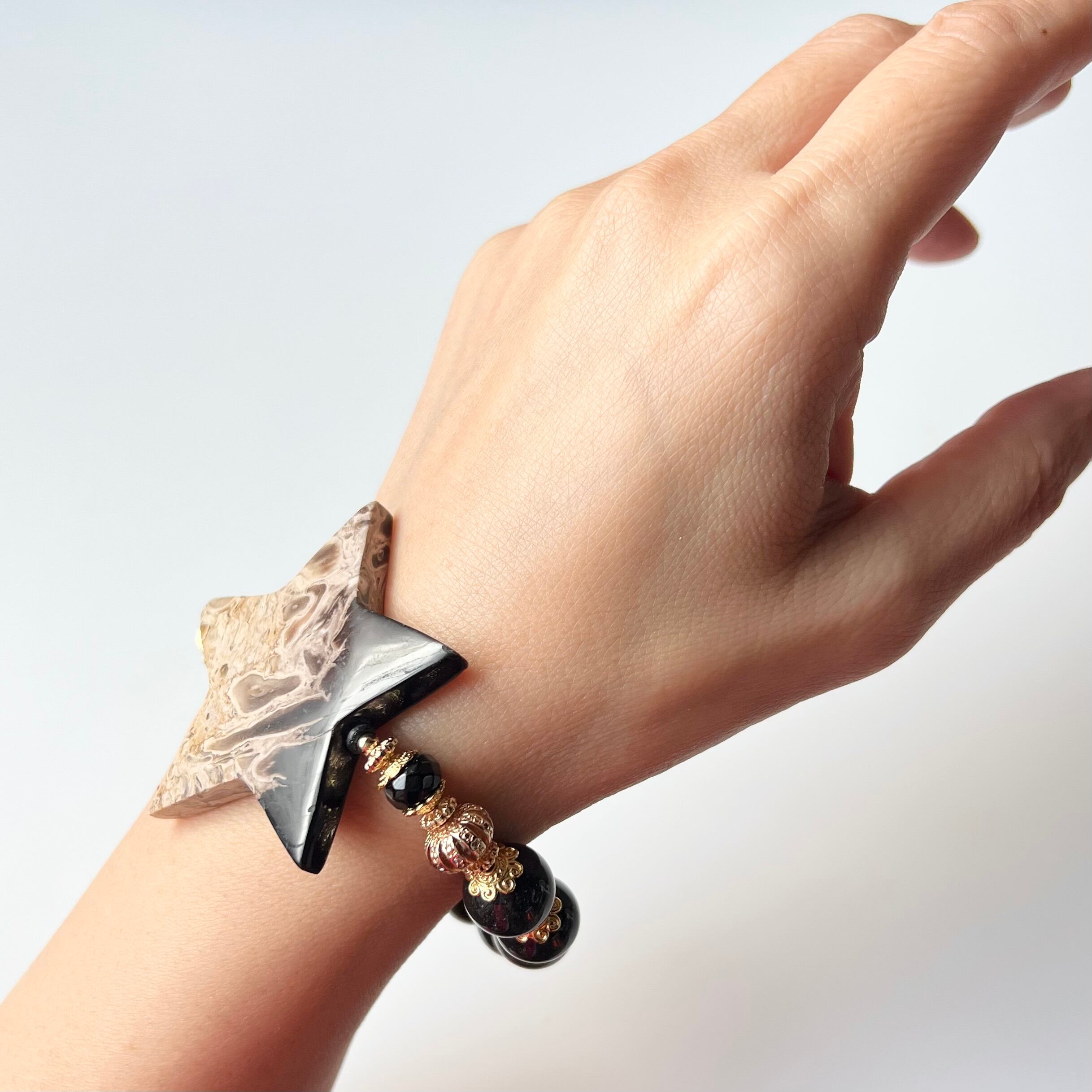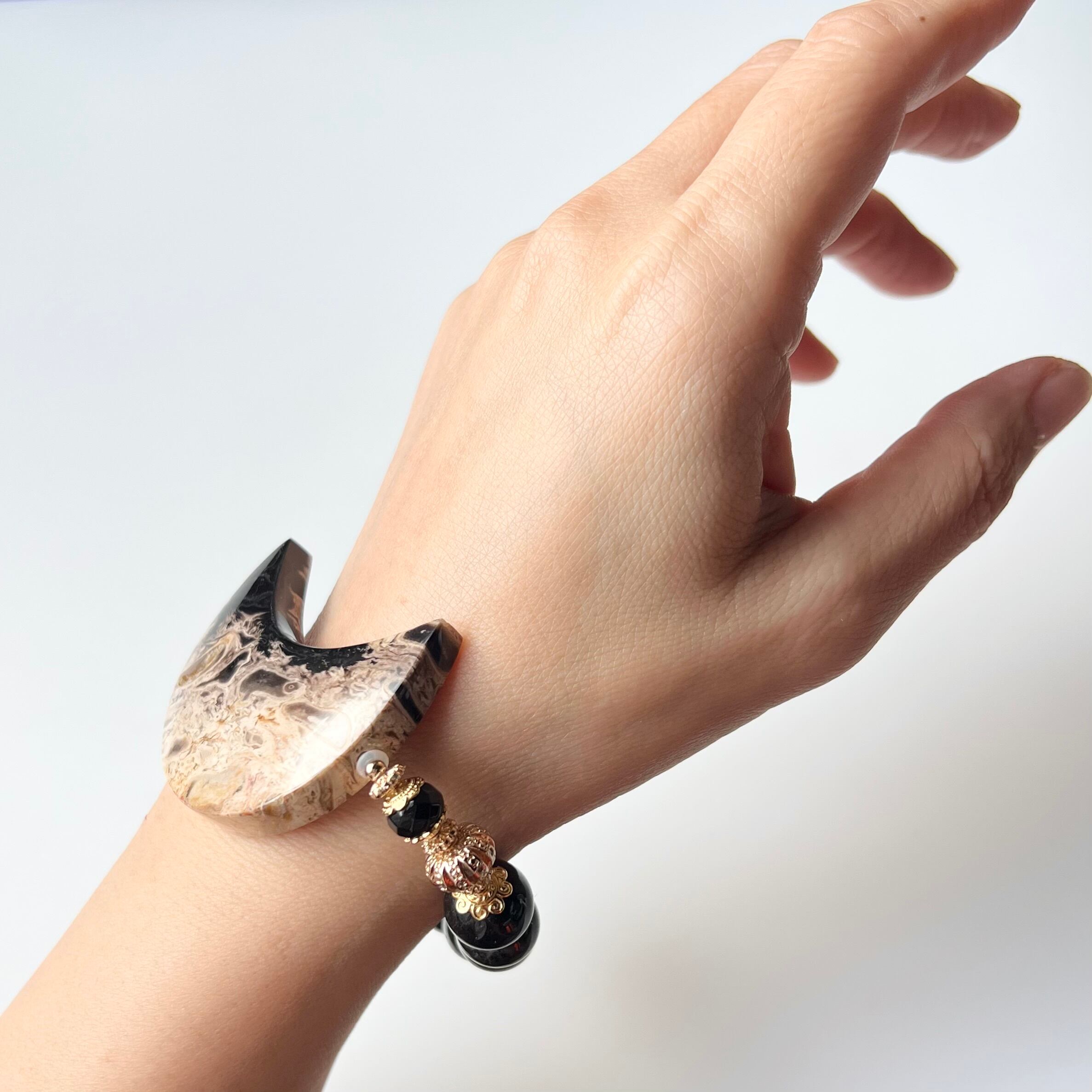 パームルートの三日月と星のブラックルチルデザインブレスレットです