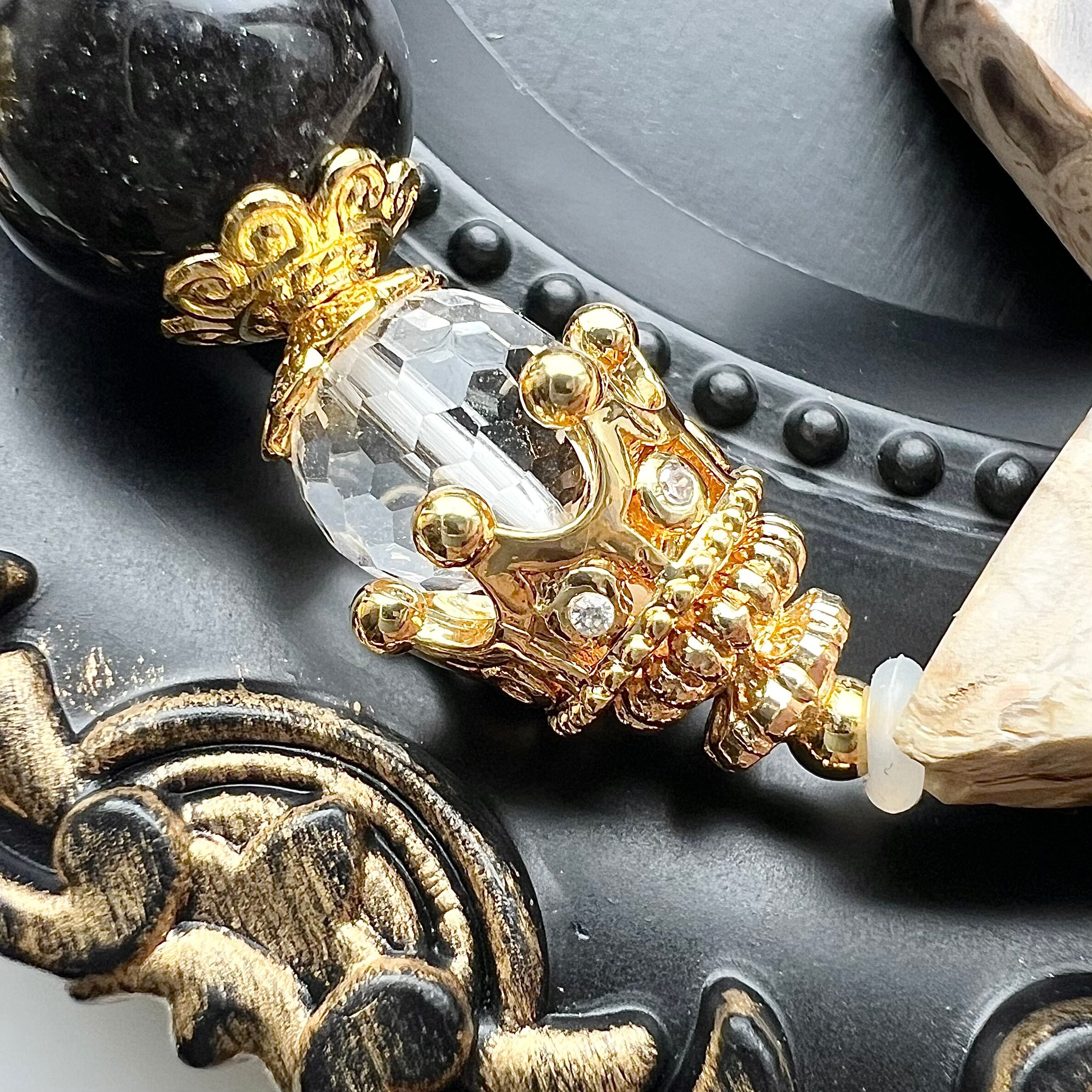 他にも水晶のミラーボールカットや王冠のゴールドパーツなどをあしらい、華やかに仕上げました