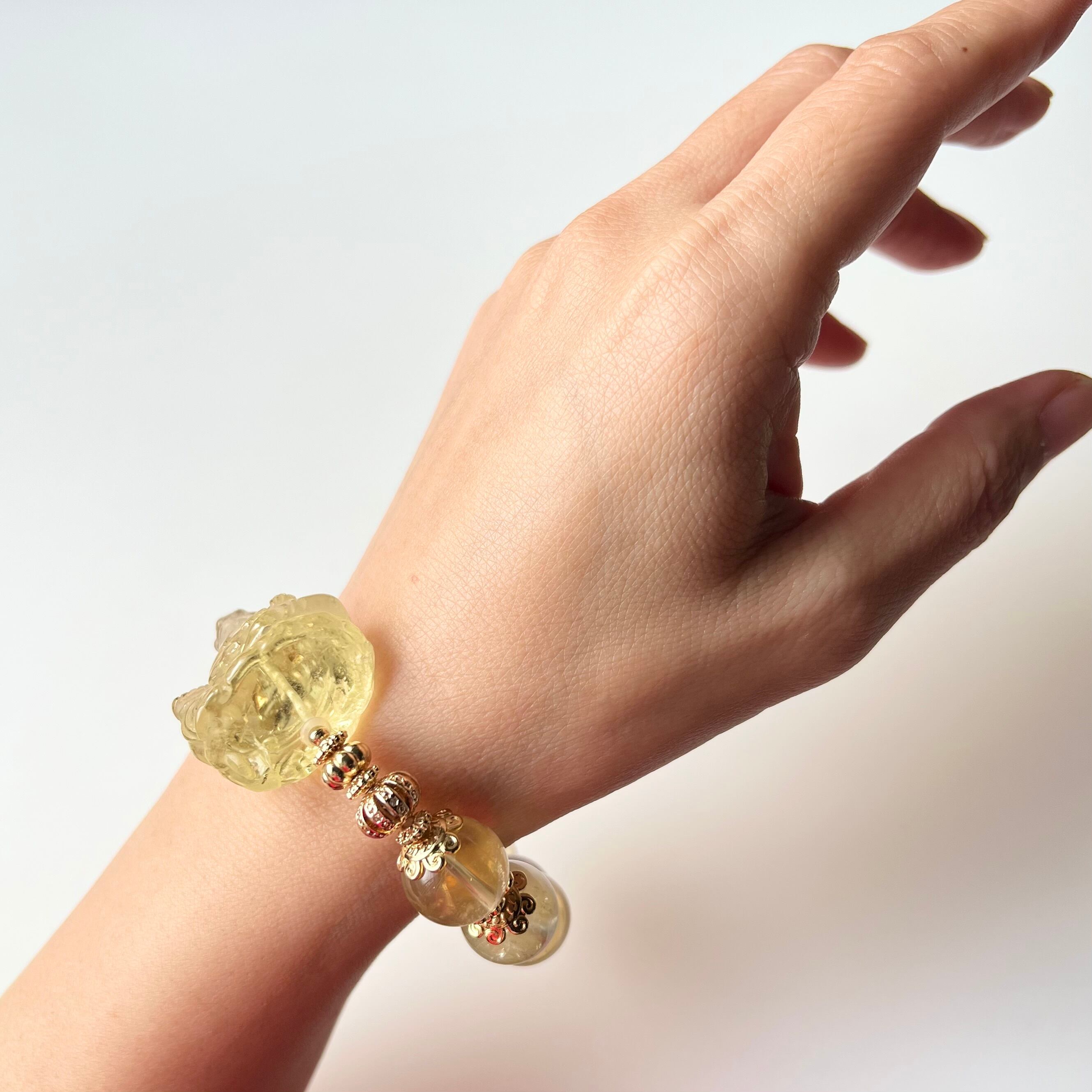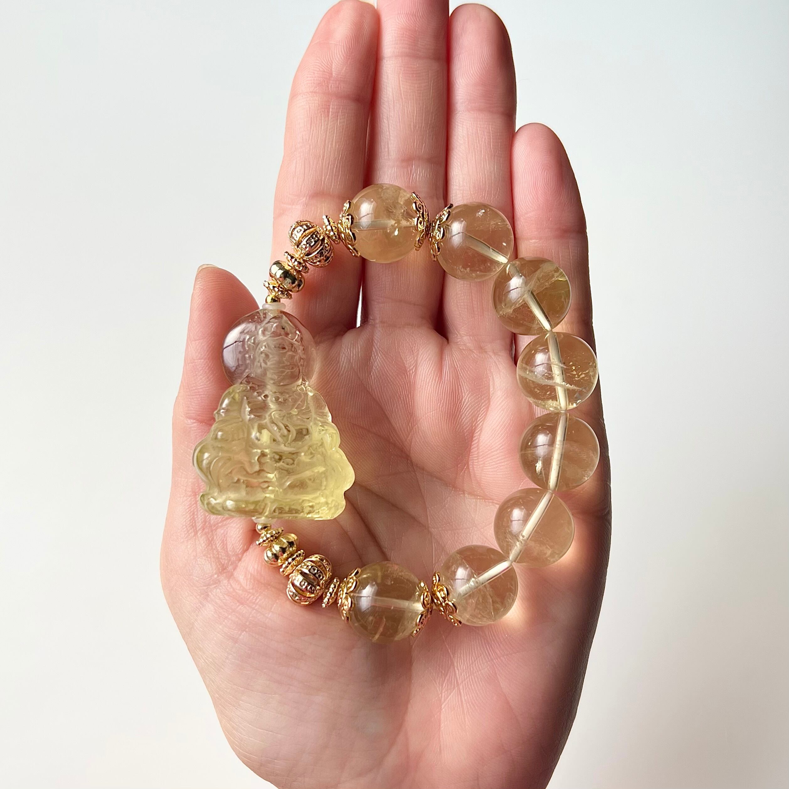 シトリンイエローにゴールドパーツが映えるブレスができました