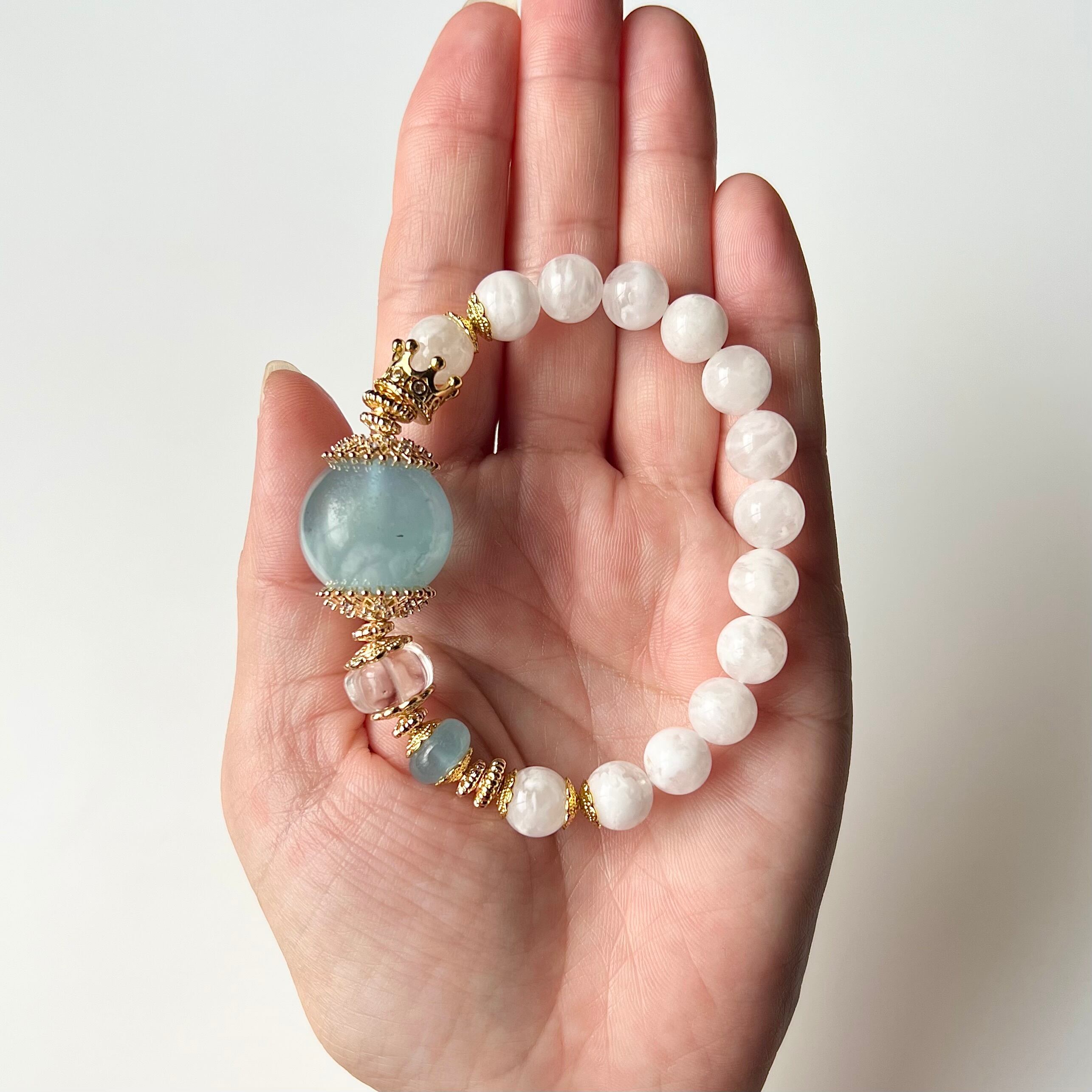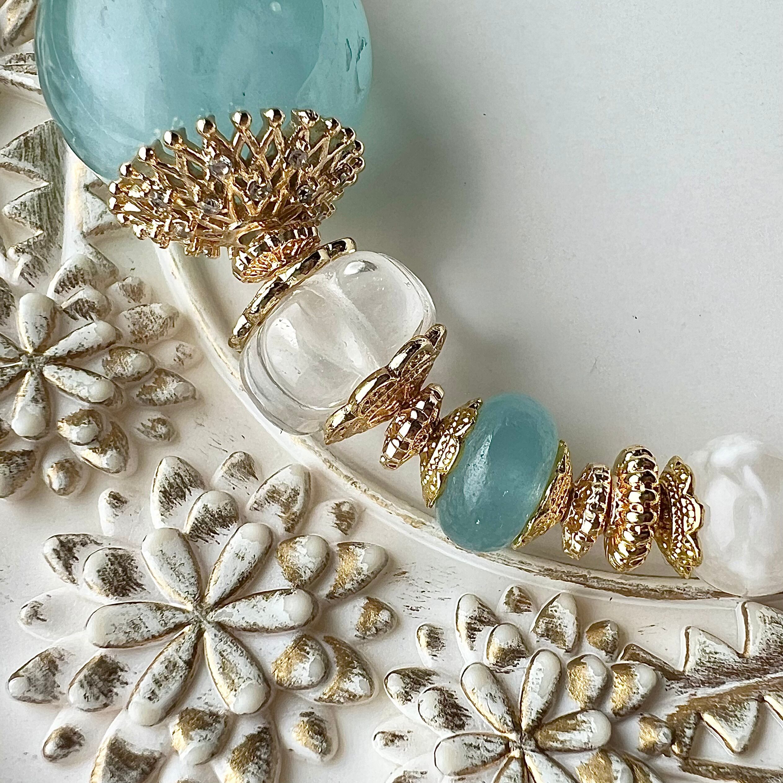 大玉アクアマリンとホワイトガーデンクォーツのデザインブレスレットです