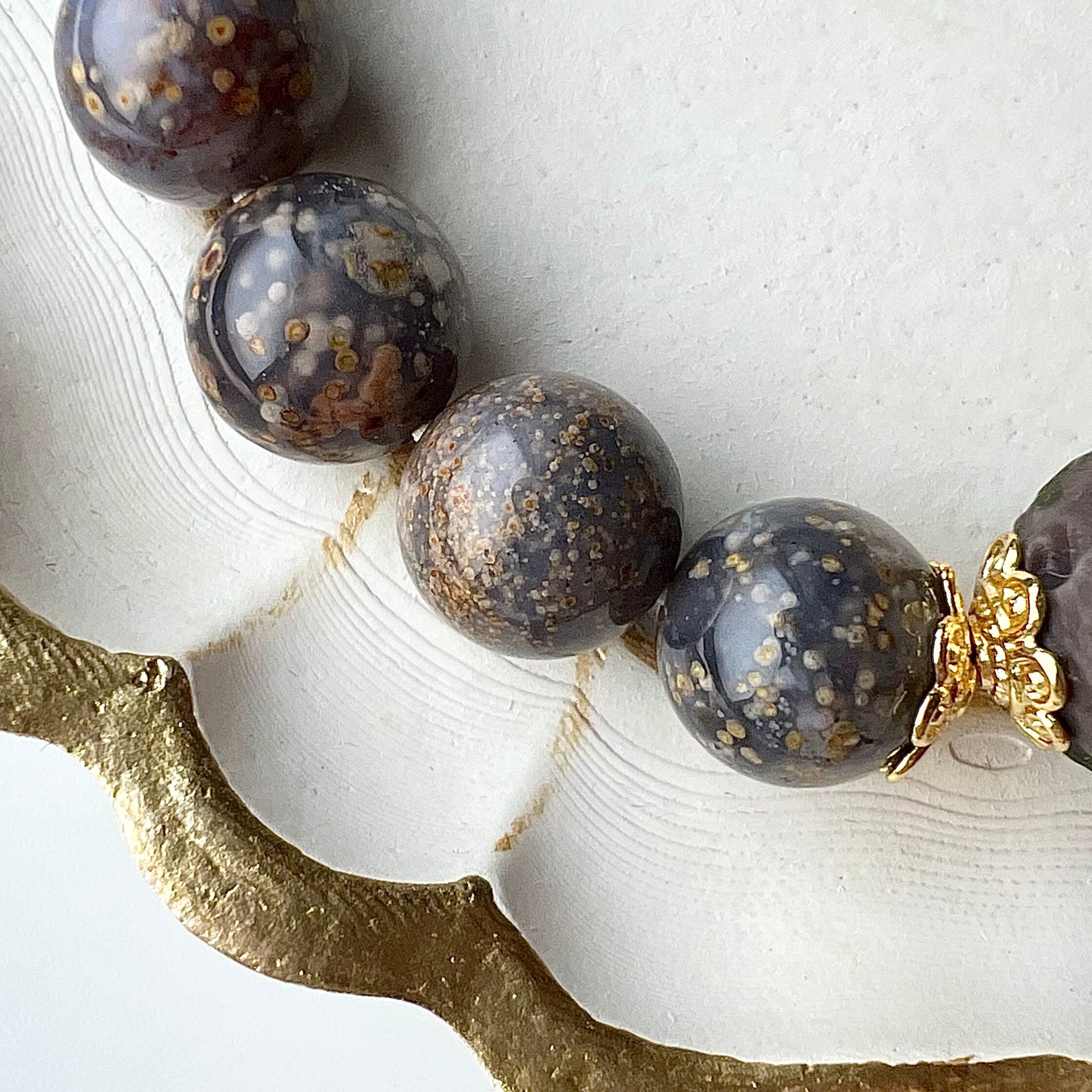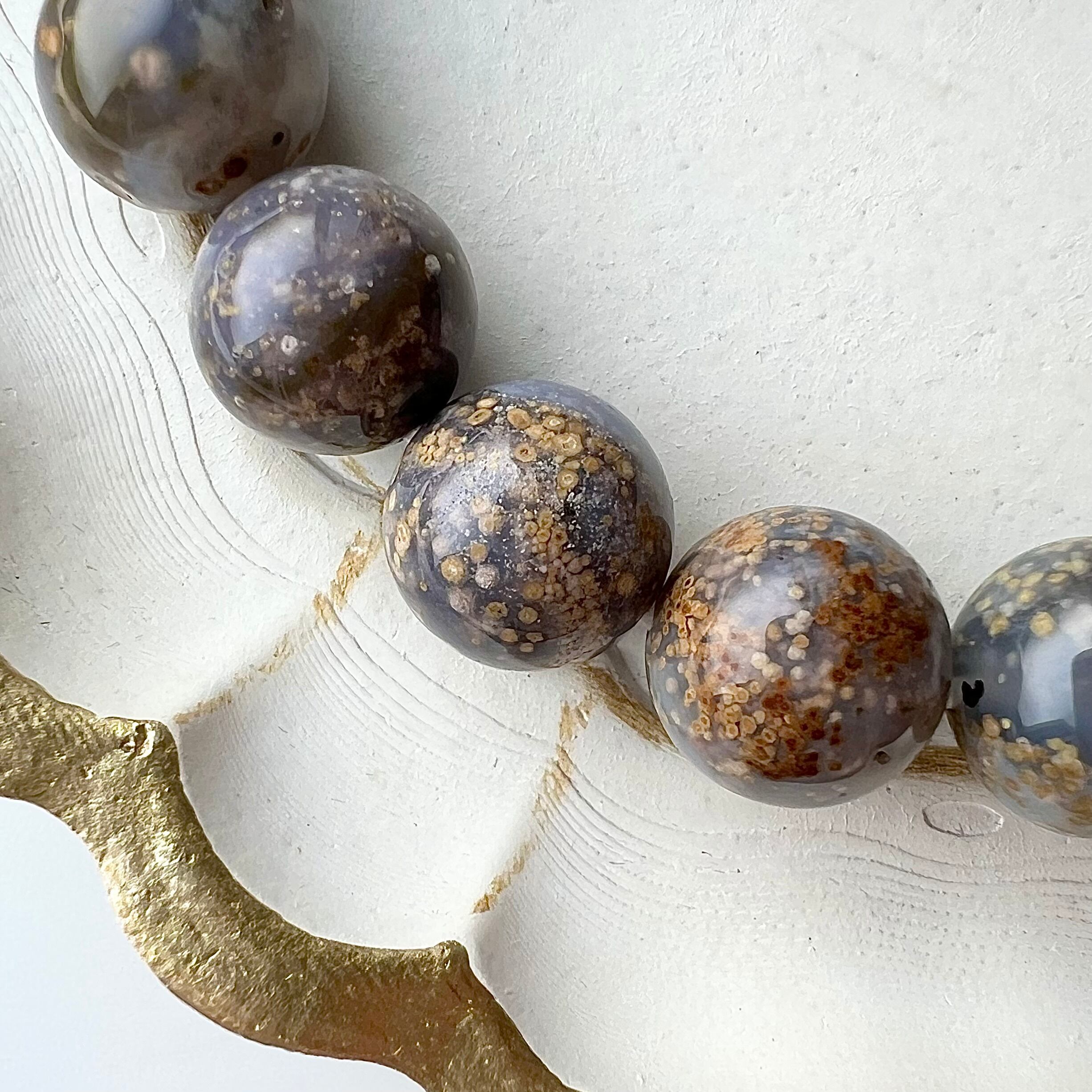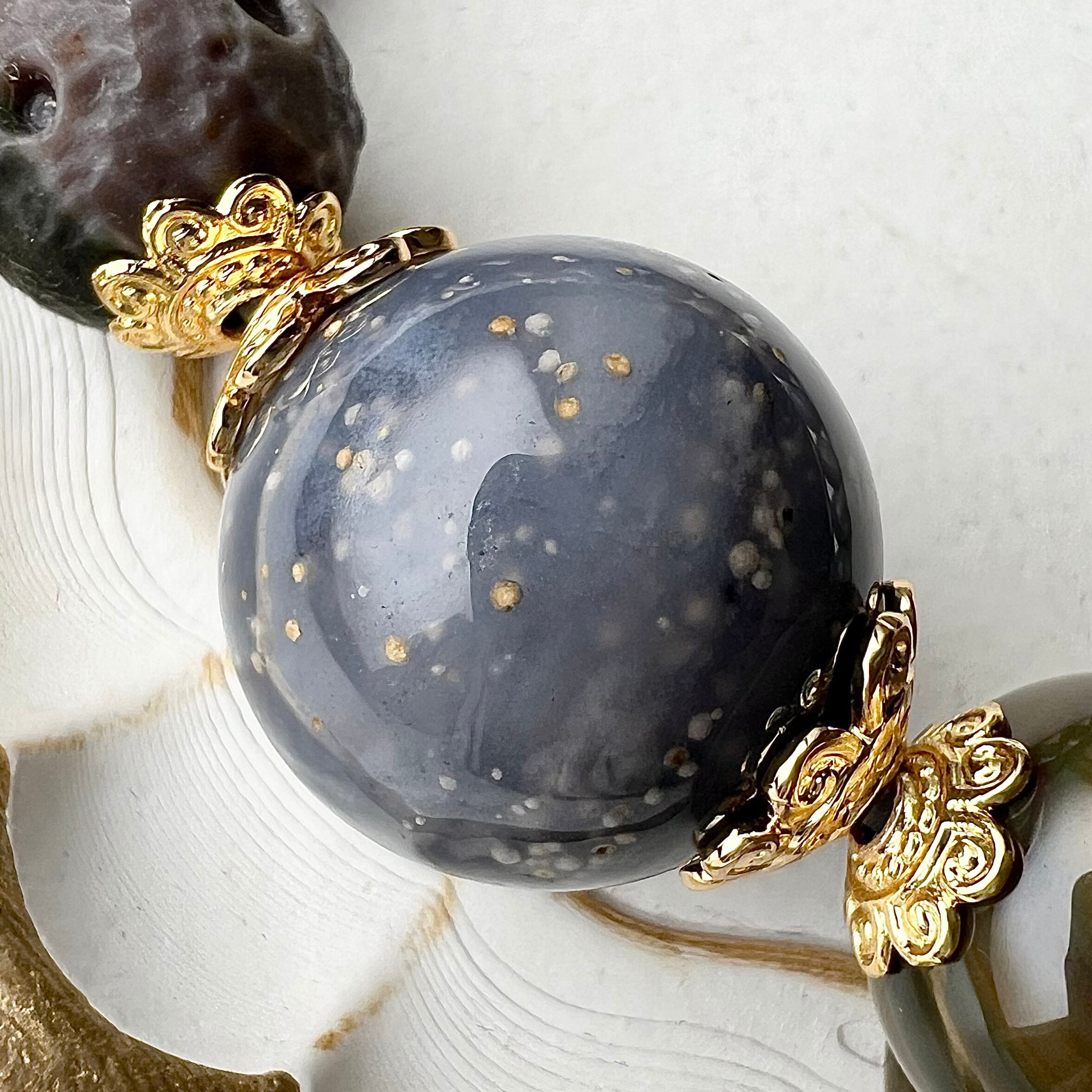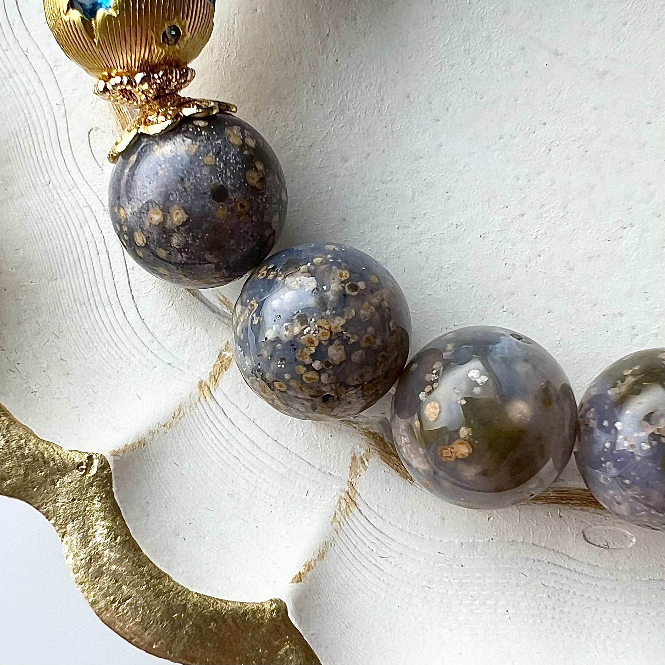 ブルーグレーの瑪瑙の中に、丸い小さな内包物が星のように浮かんでいる様子はまさに星空