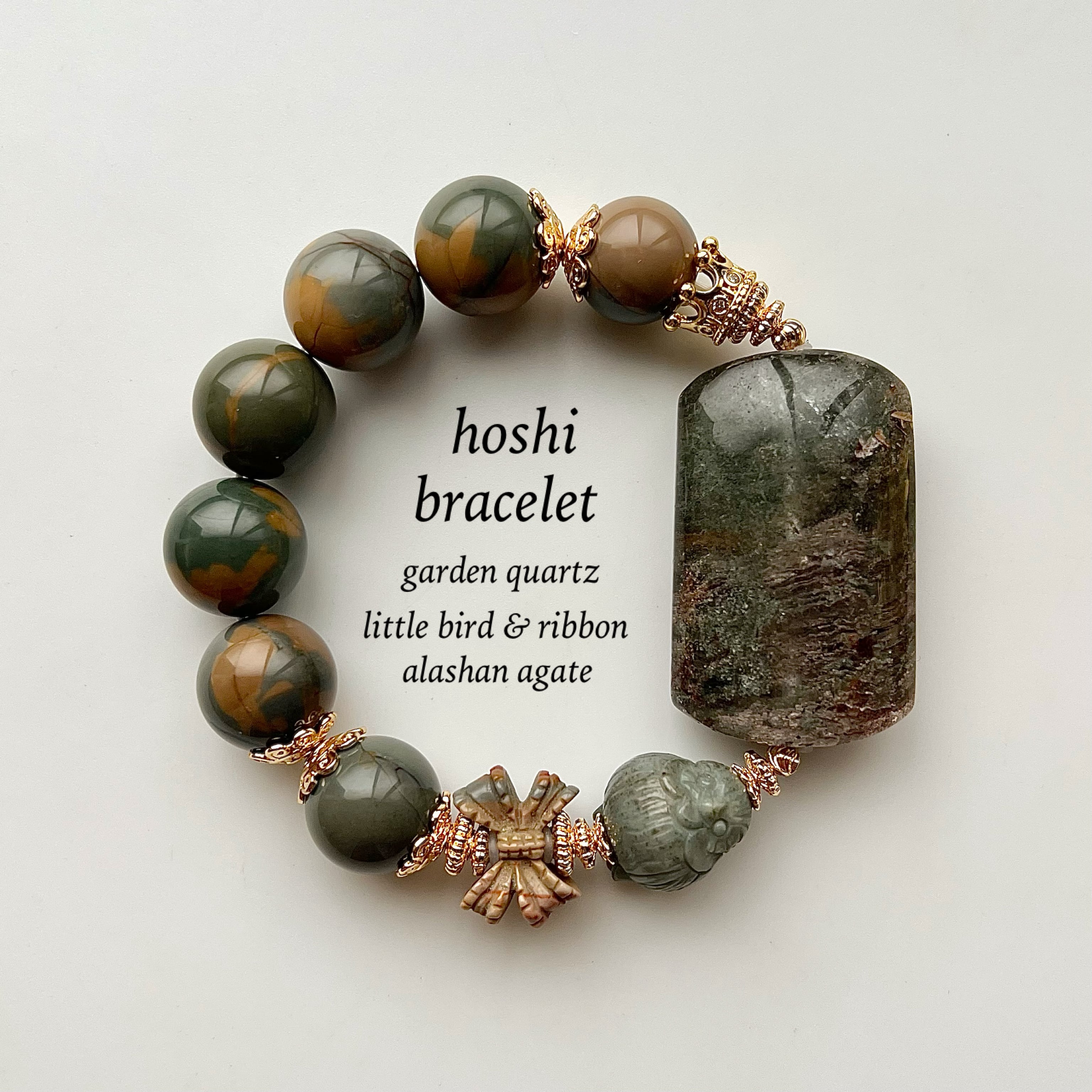 ガーデンクォーツ アラシャン瑪瑙 小鳥 リボン 天然石 ブレスレット