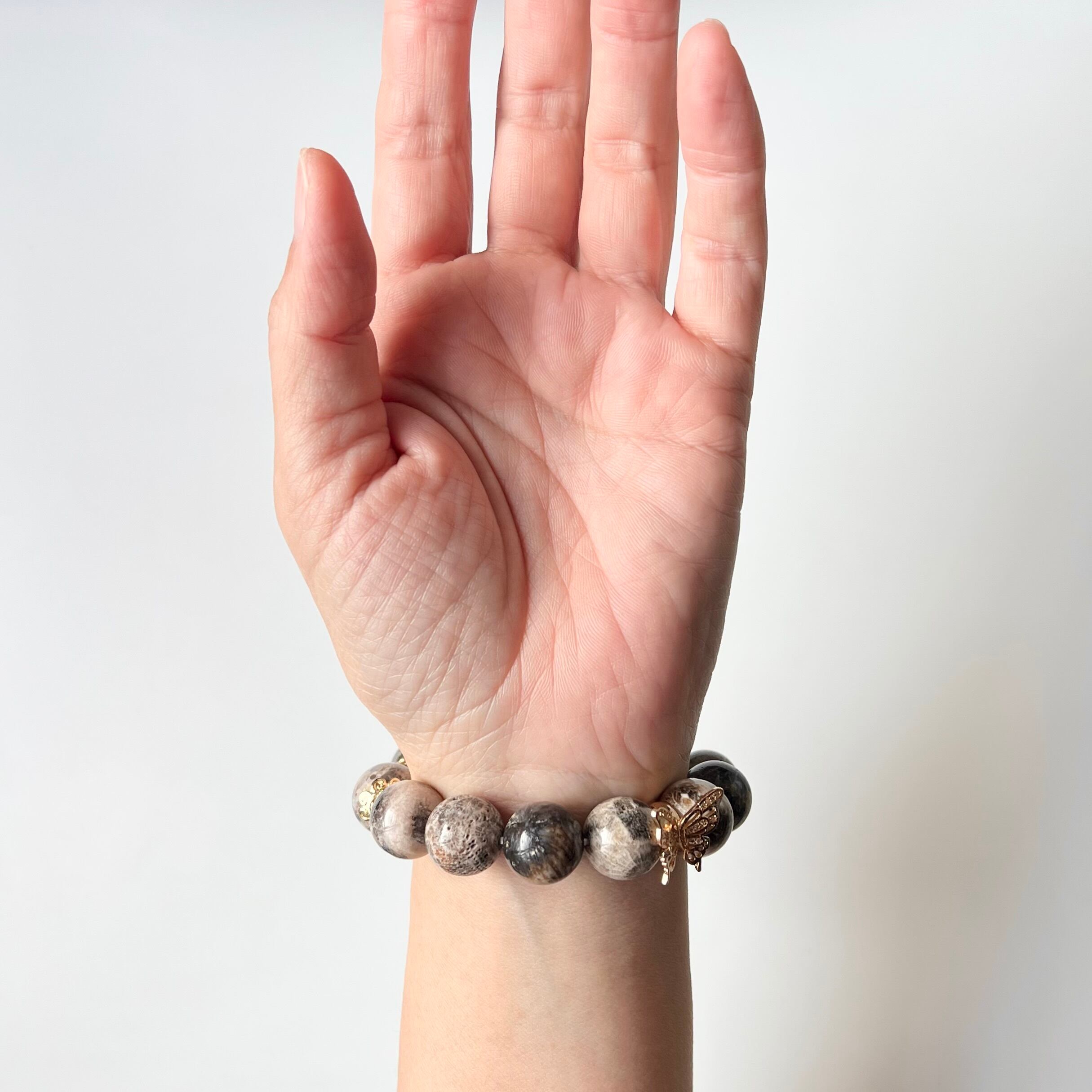 太極石 牡丹 蝶 フォッシルコーラル 天然石 ブレスレット