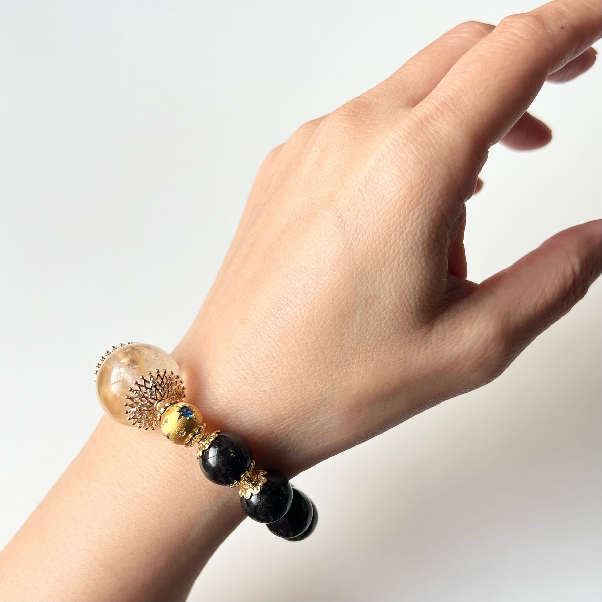 大玉シトリン ブラックルチルクォーツ 天然石 ブレスレット