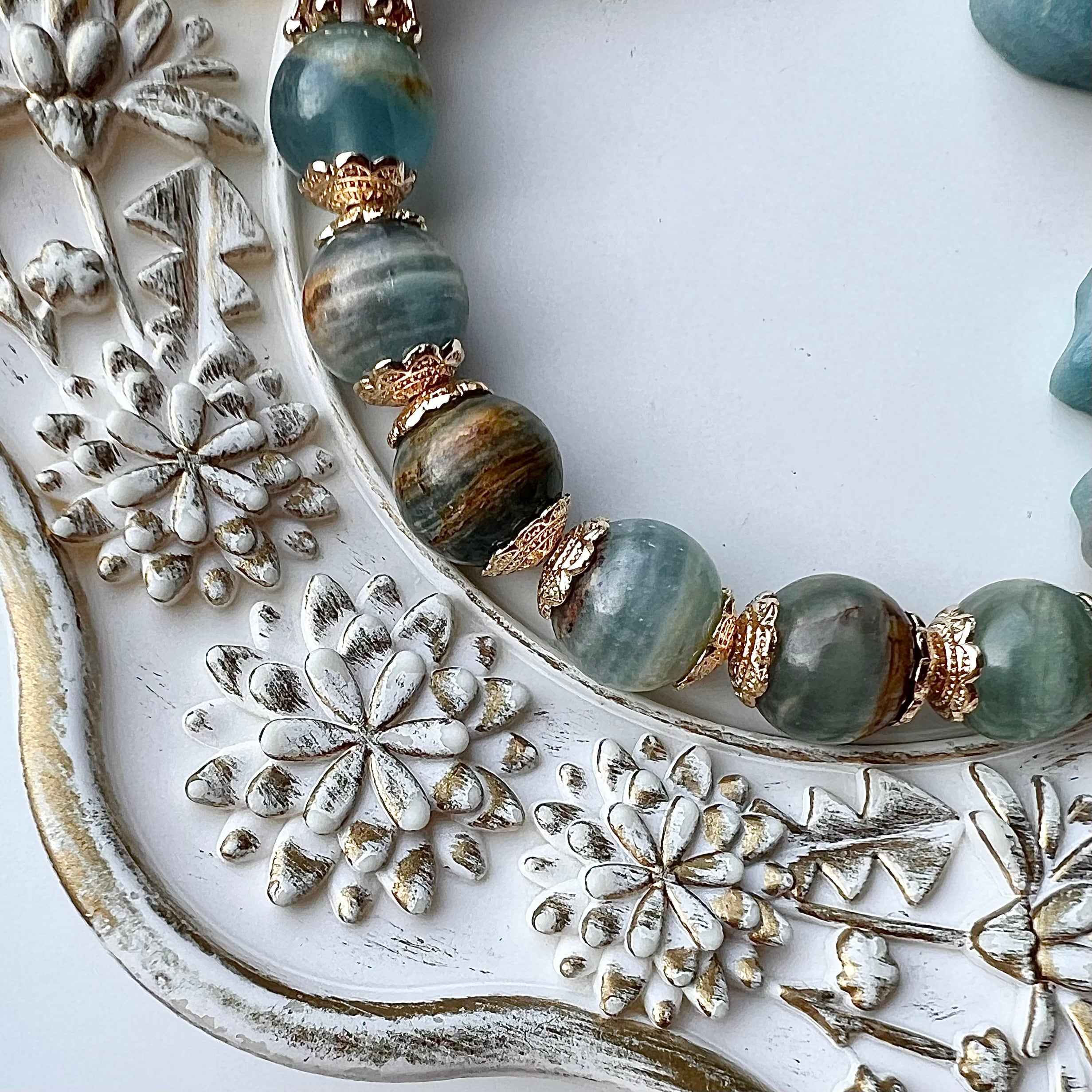 ブレス部分は海辺に見立てたブルーカルサイトを使用