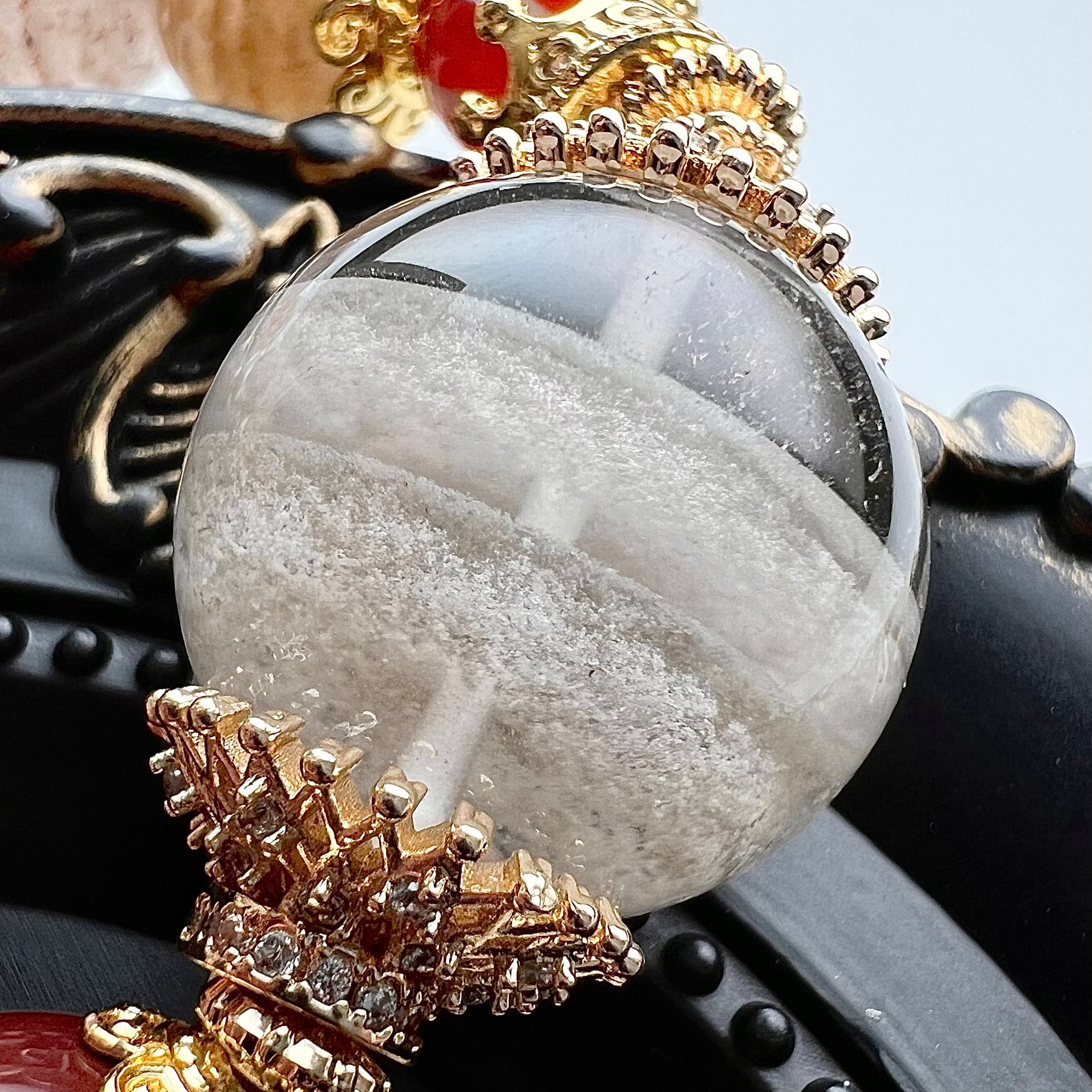 メインの大玉ホワイトガーデンクォーツは透明度が高く二層になっています