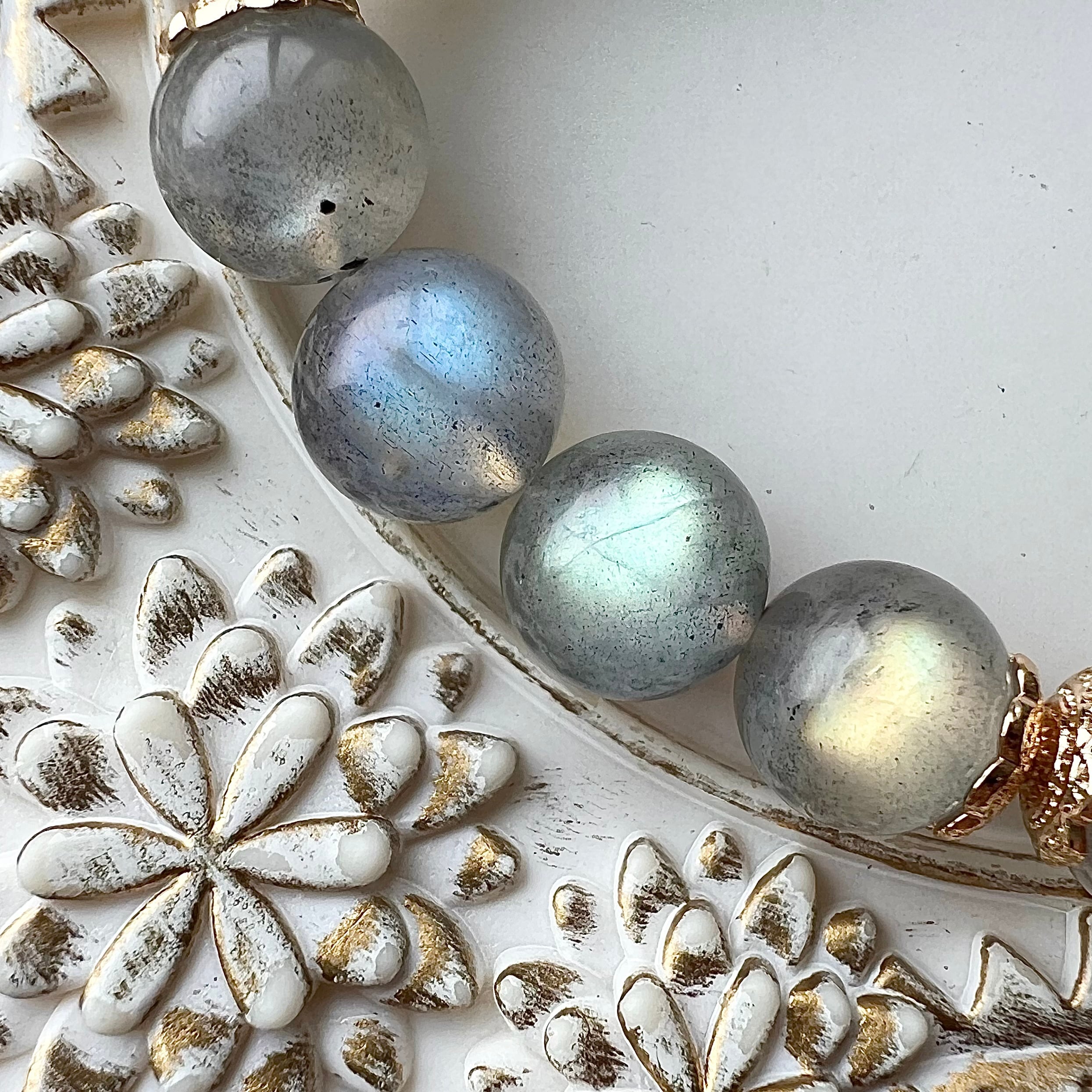 ラブラドライト 三日月 狼 小鳥 天然石 ブレスレット