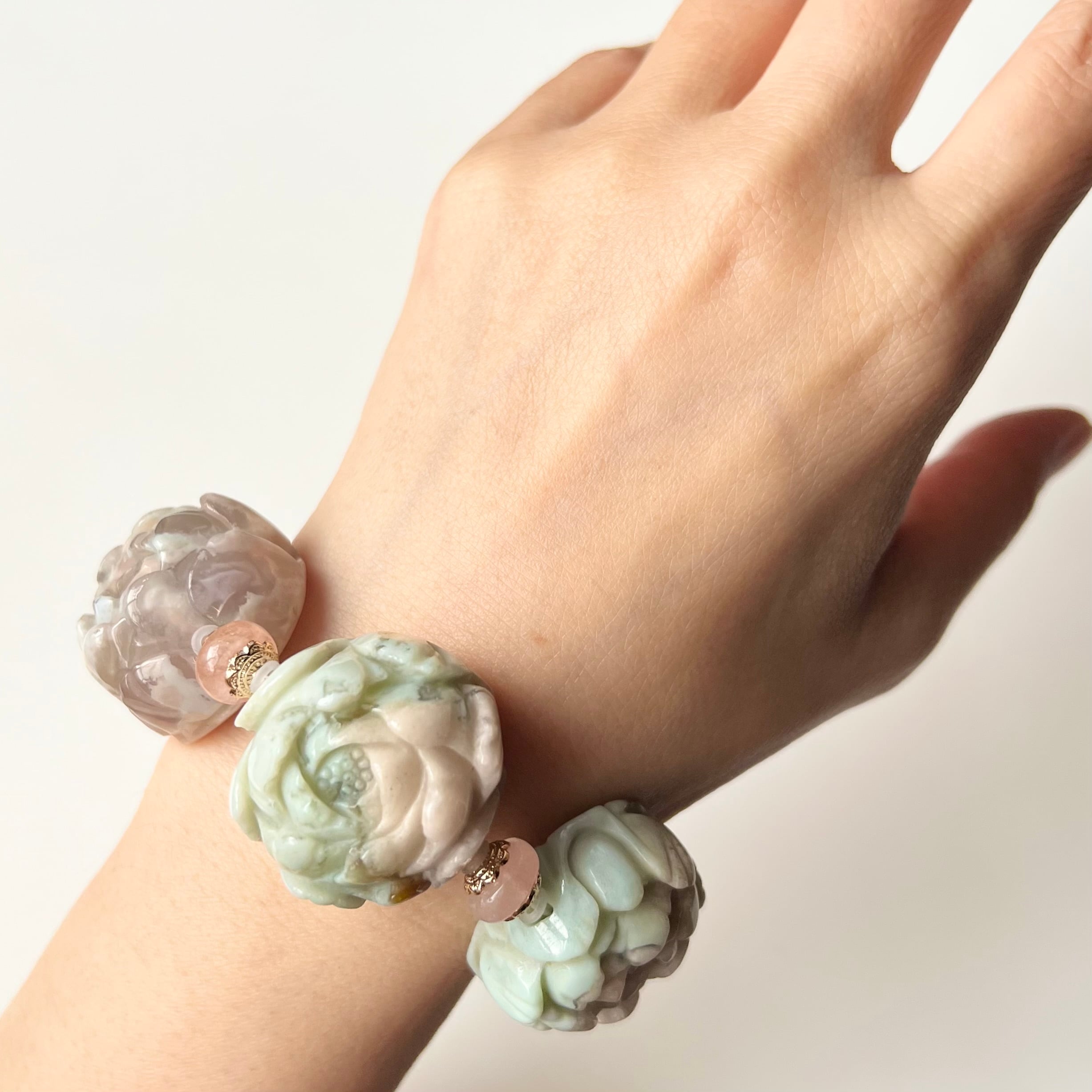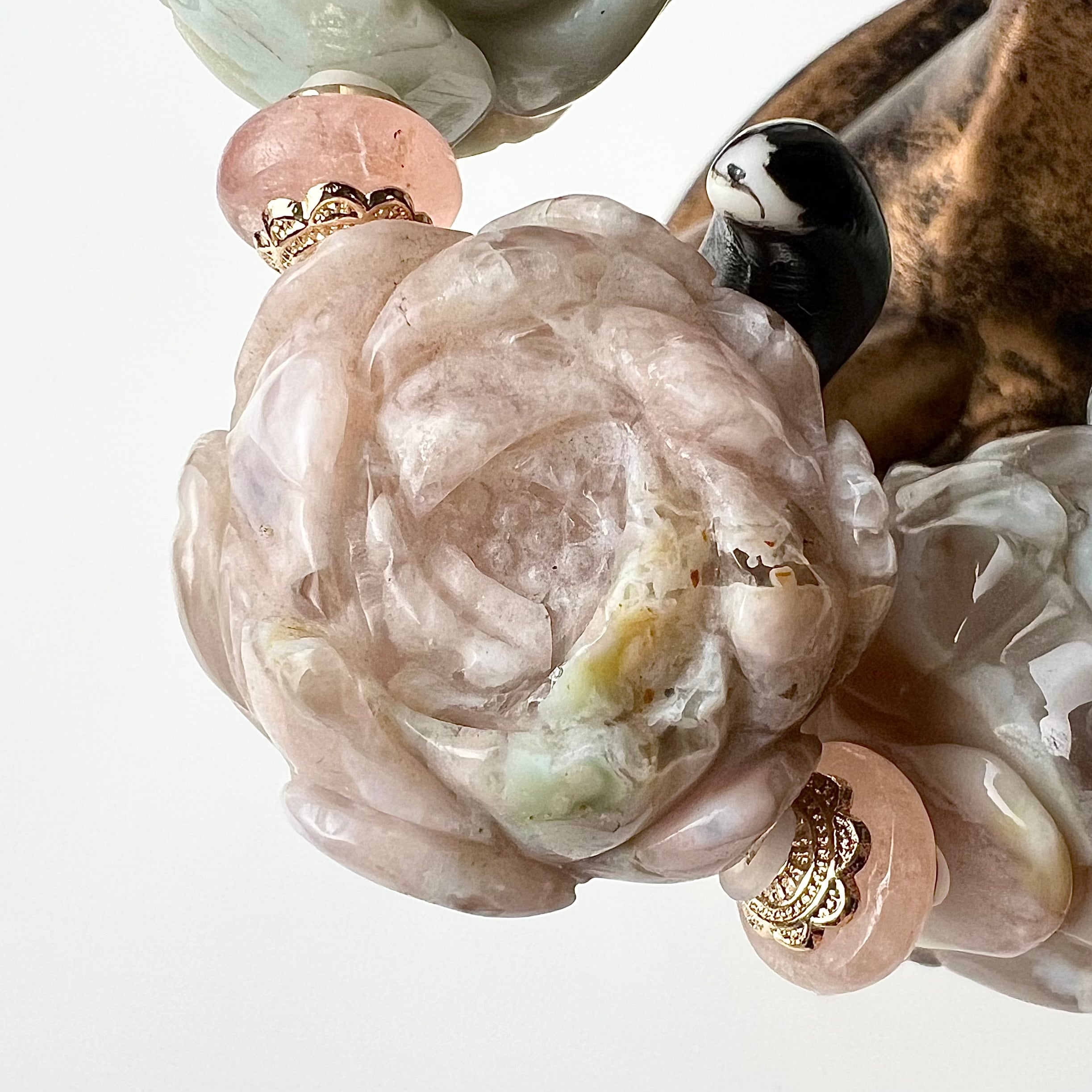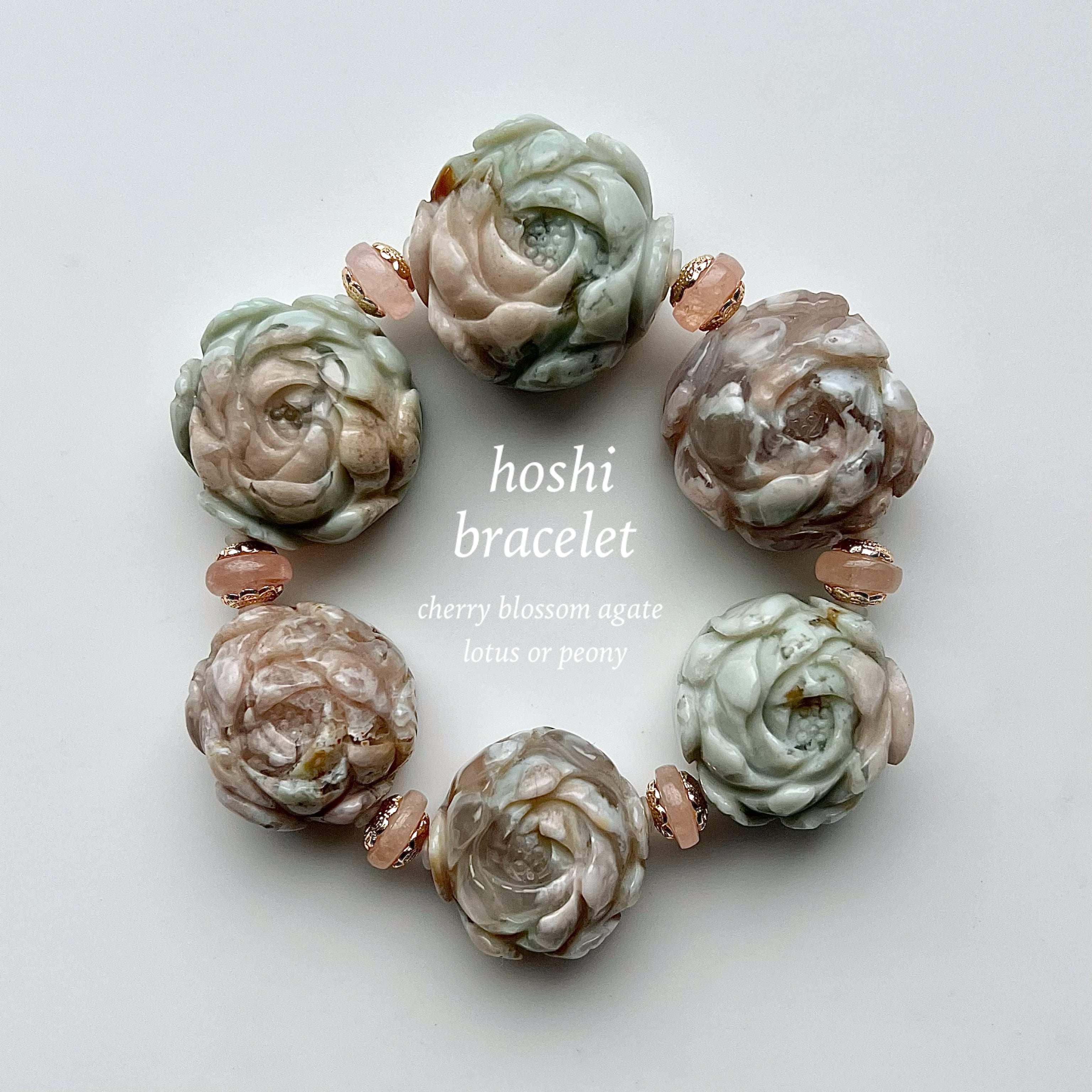 桜瑪瑙 蓮花 牡丹 天然石 ブレスレット
