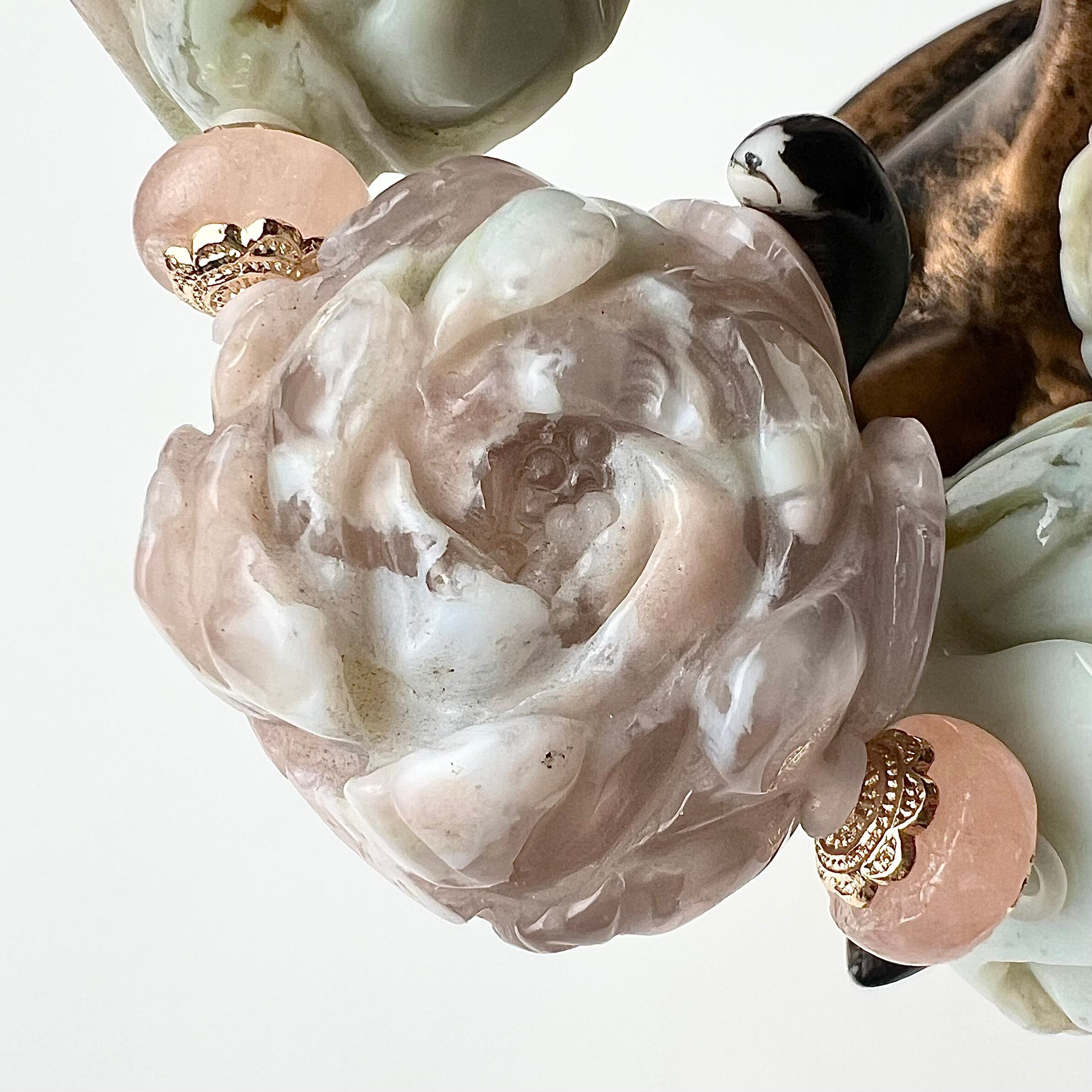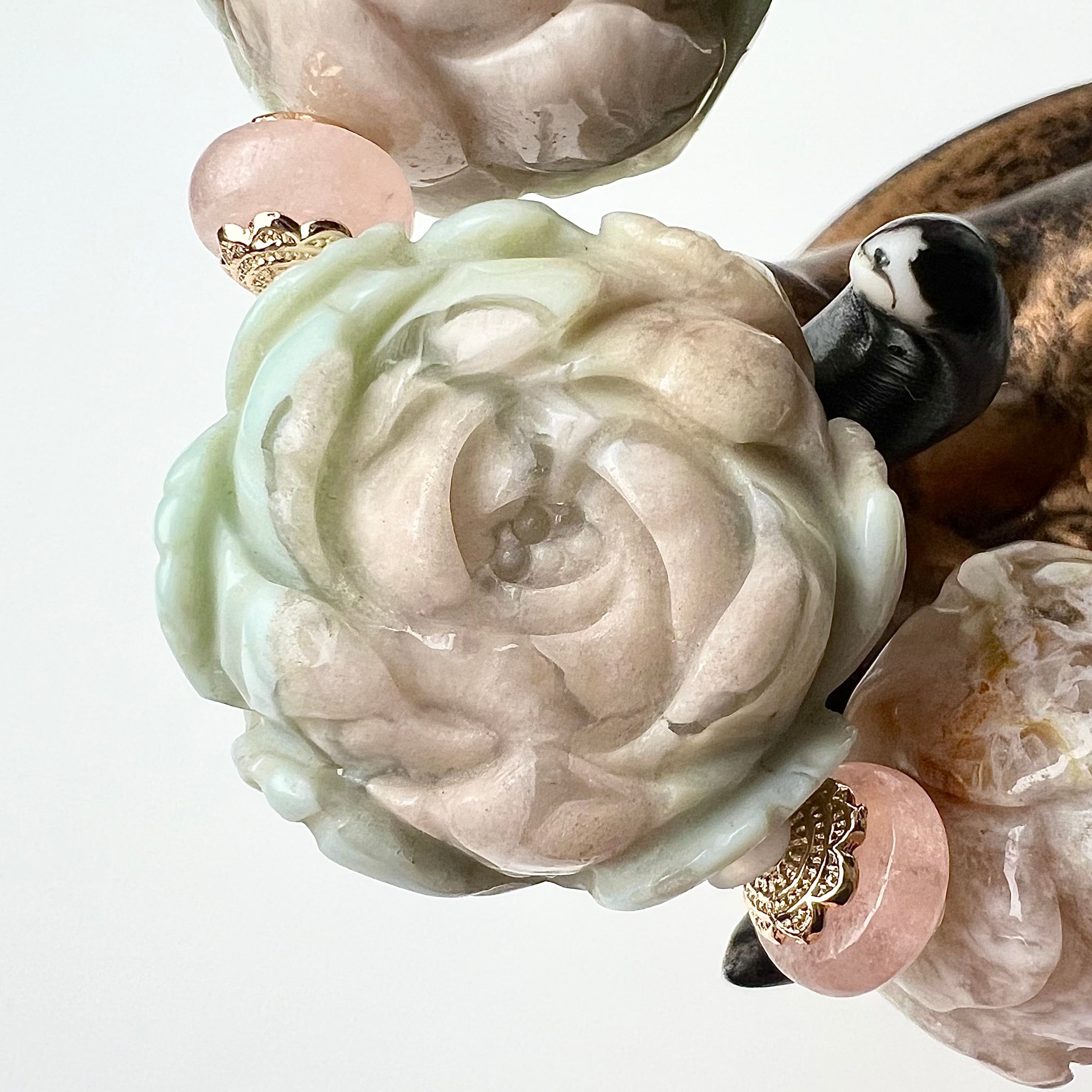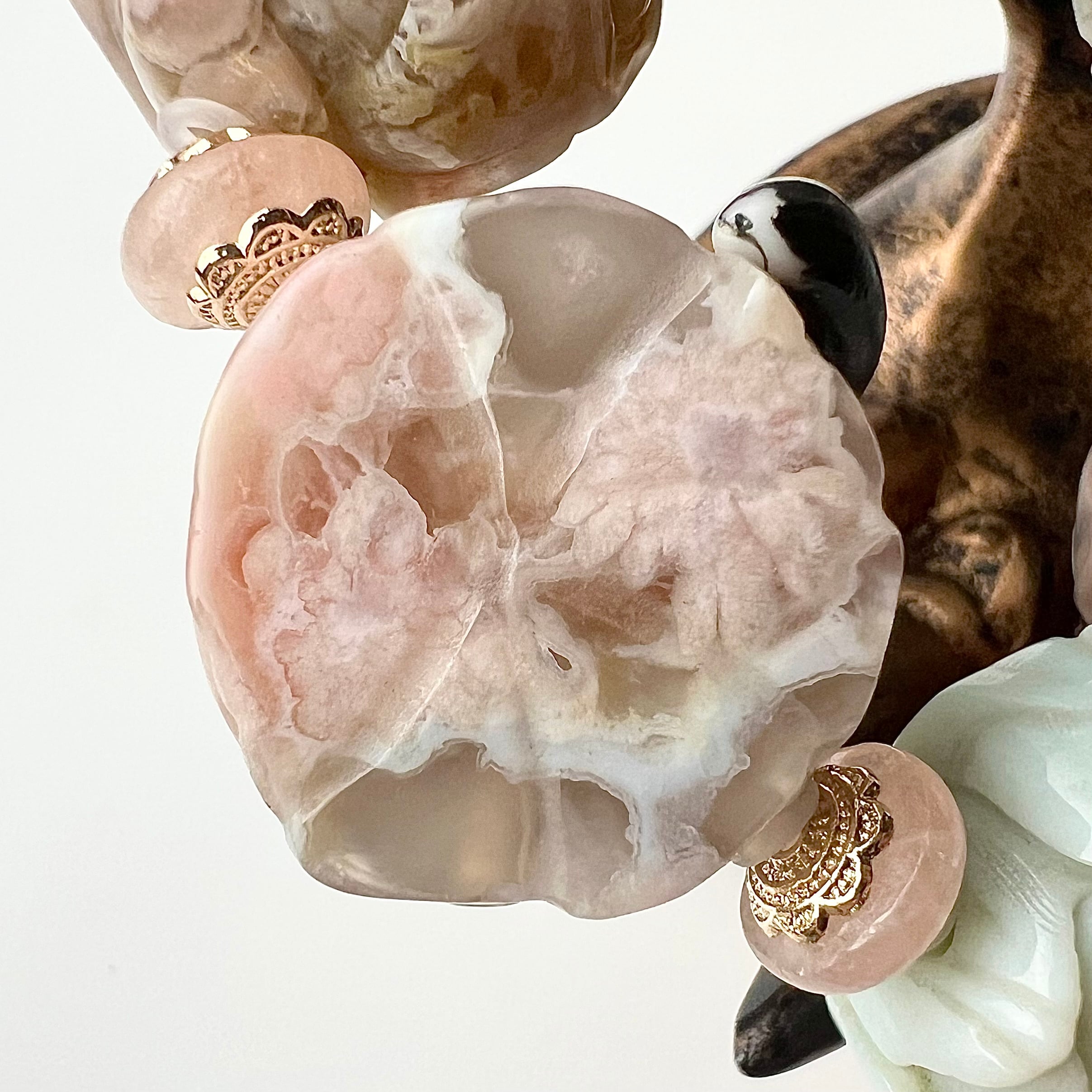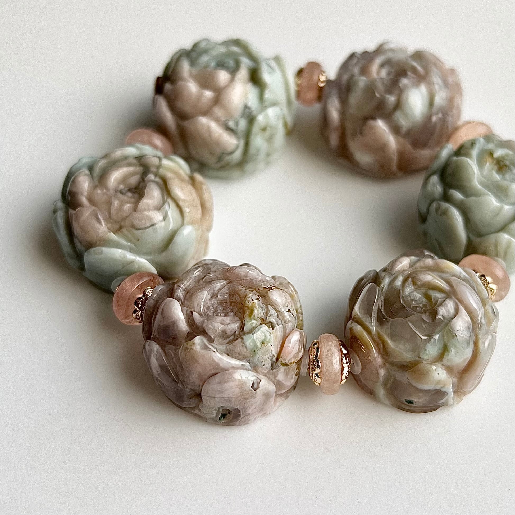 桜瑪瑙 蓮花 牡丹 天然石 ブレスレット