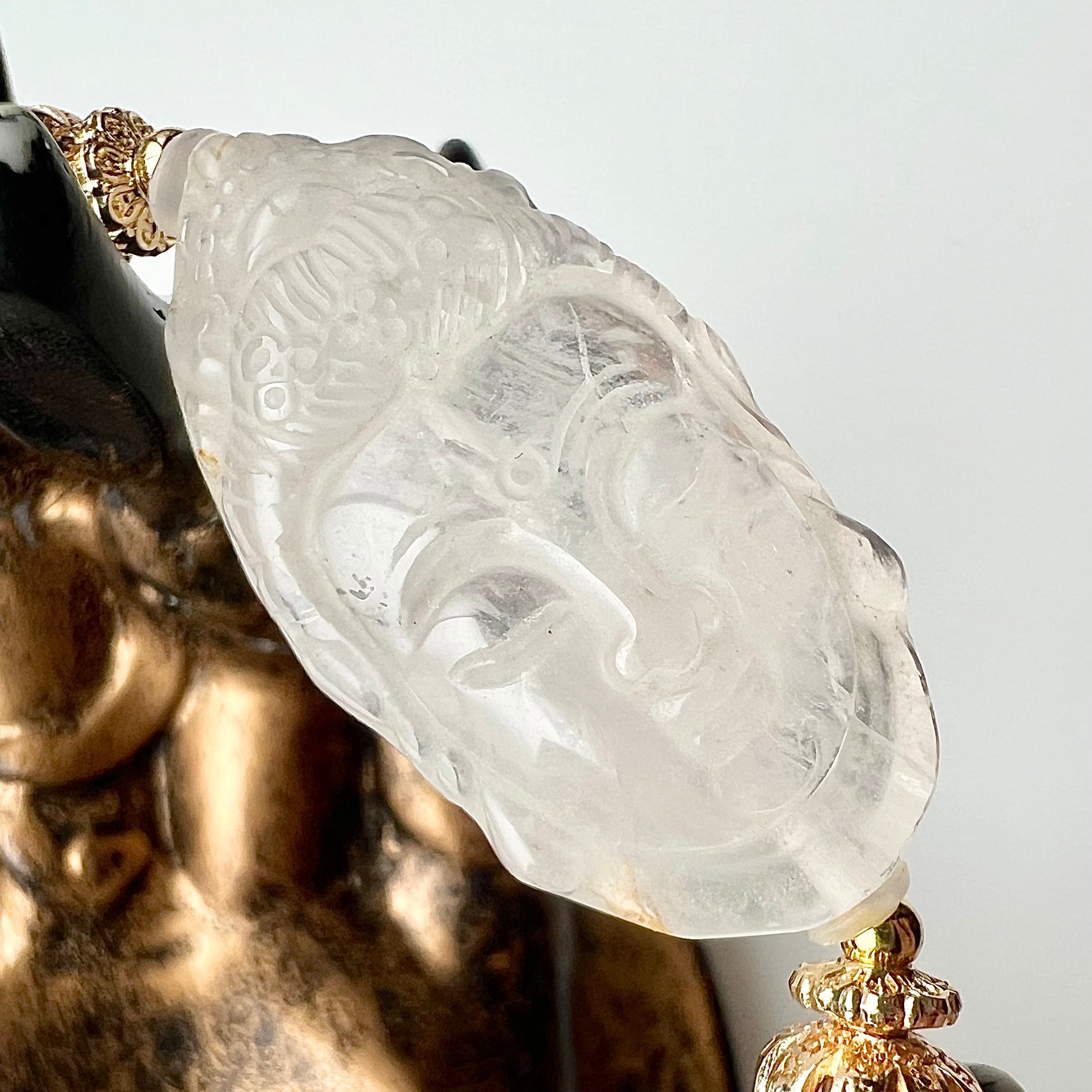 その観音様の反対側にあたる手首の内側には、水晶に施されたバジュラの彫刻をあしらいました