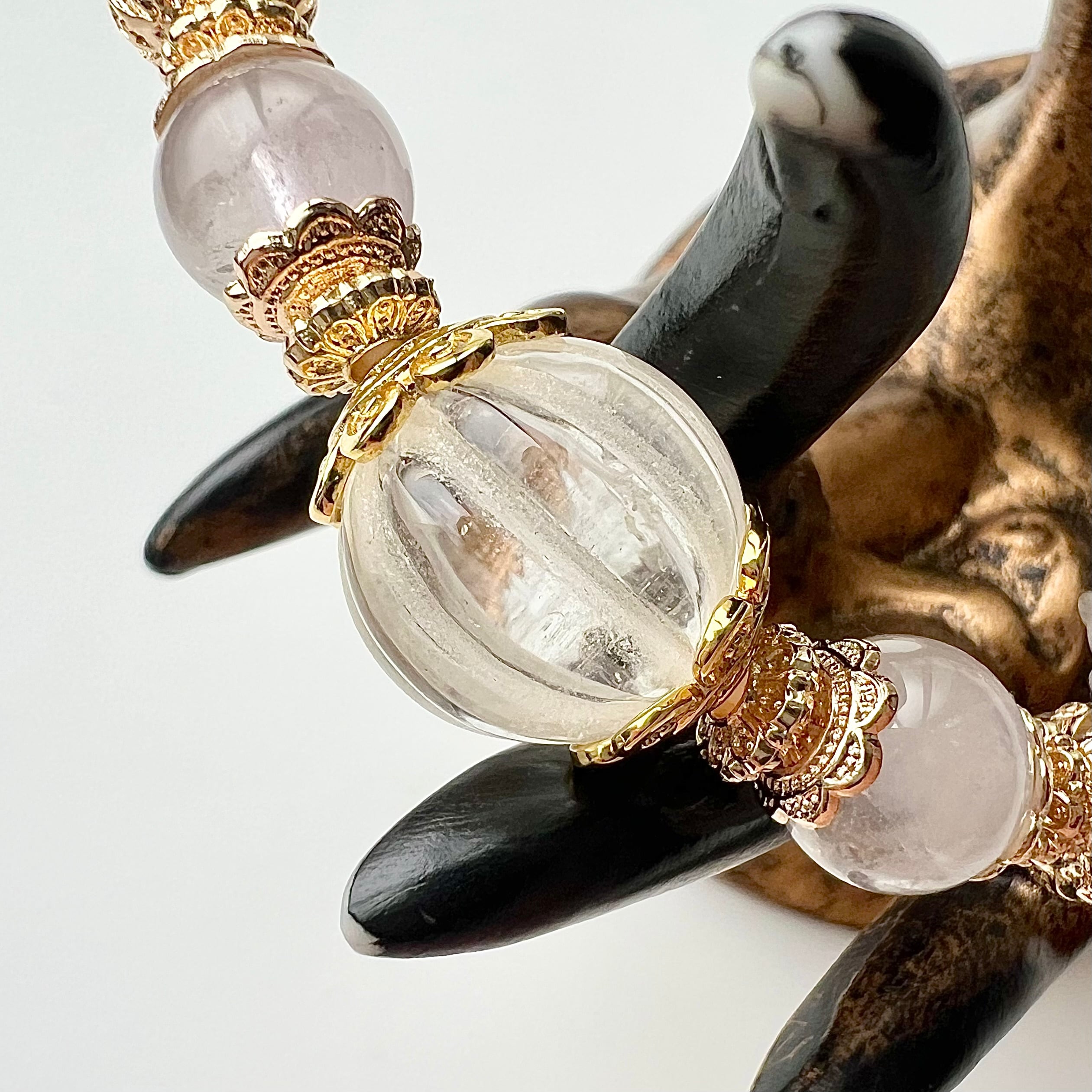 アジア圏の装飾をイメージした、水晶にゴールドパーツが映えるブレスができました