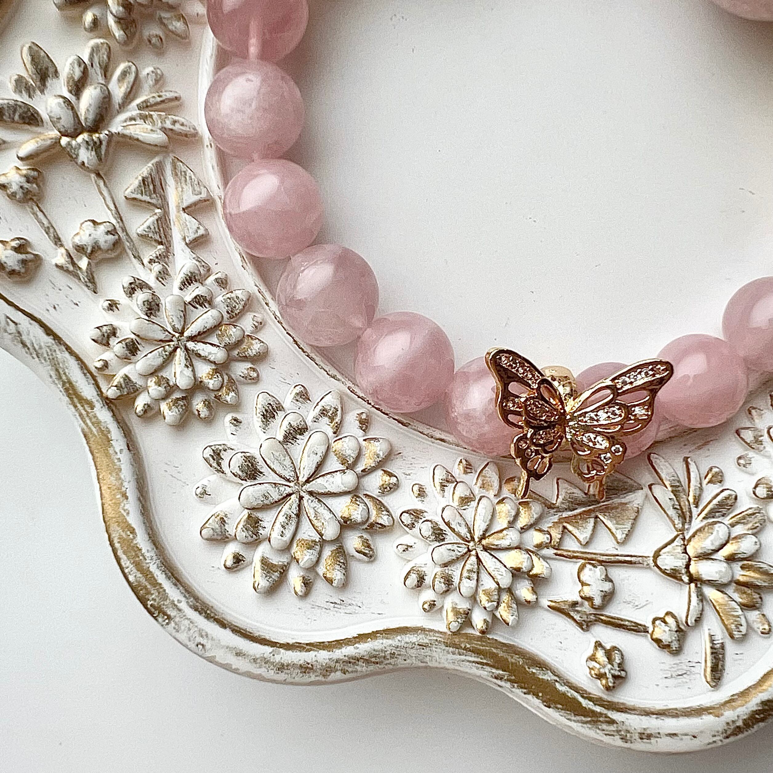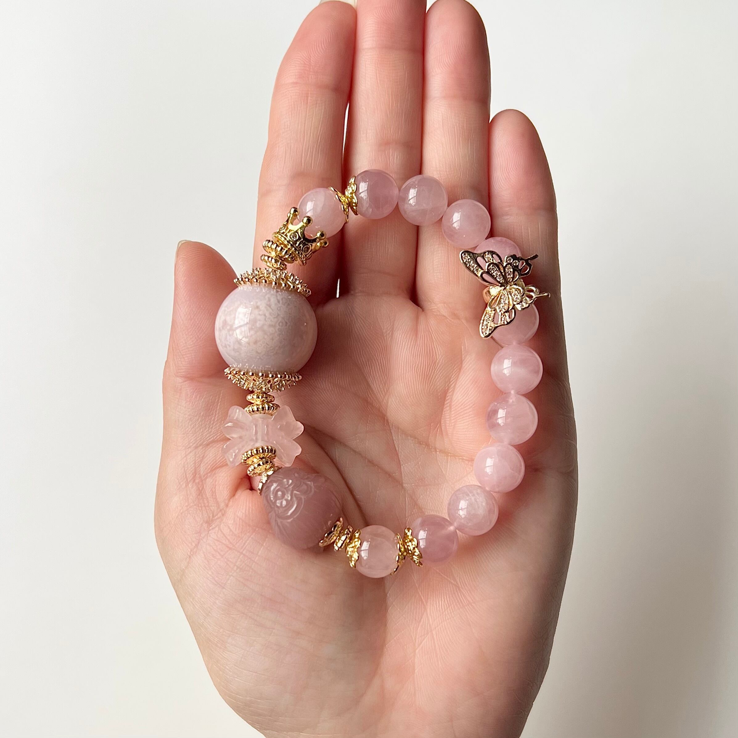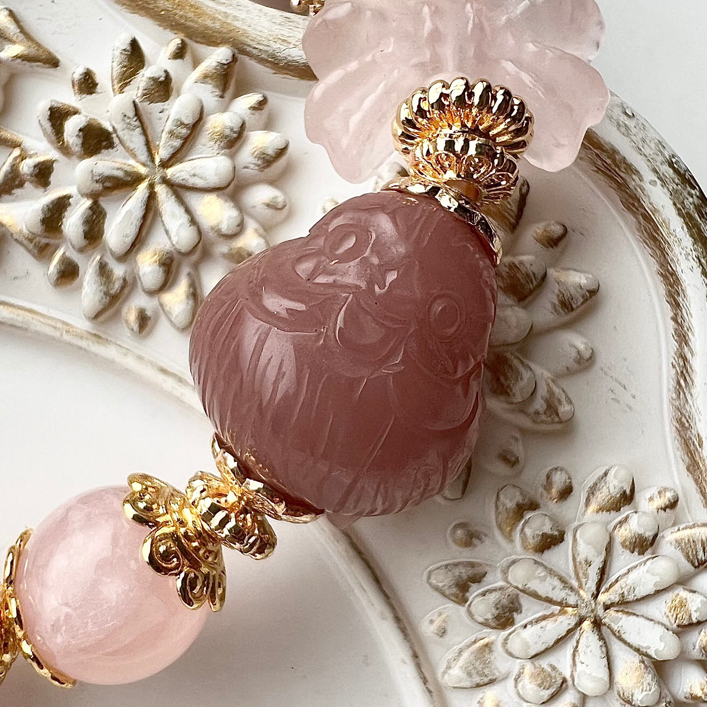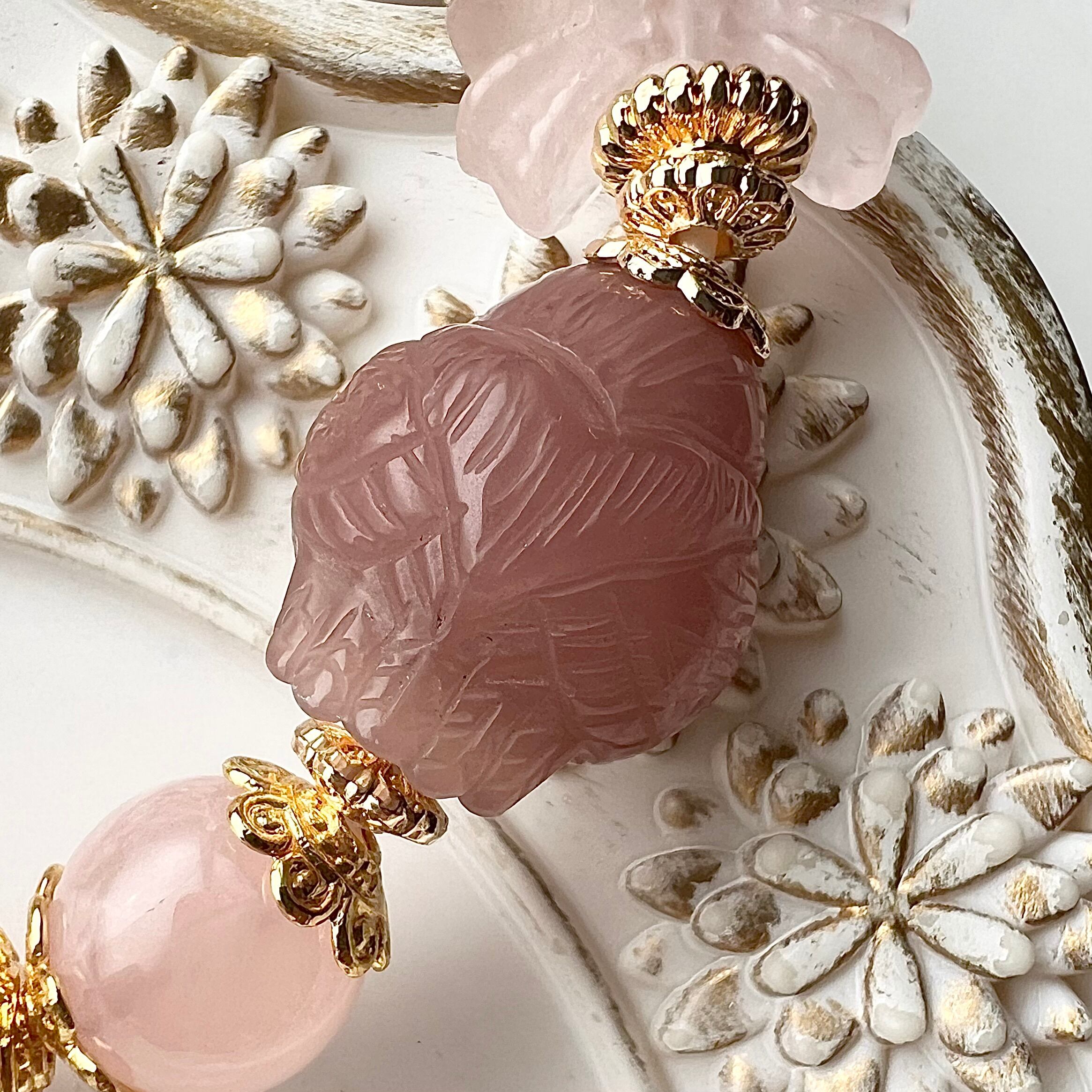 ブレス部分はトロみピンクが可愛いマダガスカル産ディープローズクォーツを使用