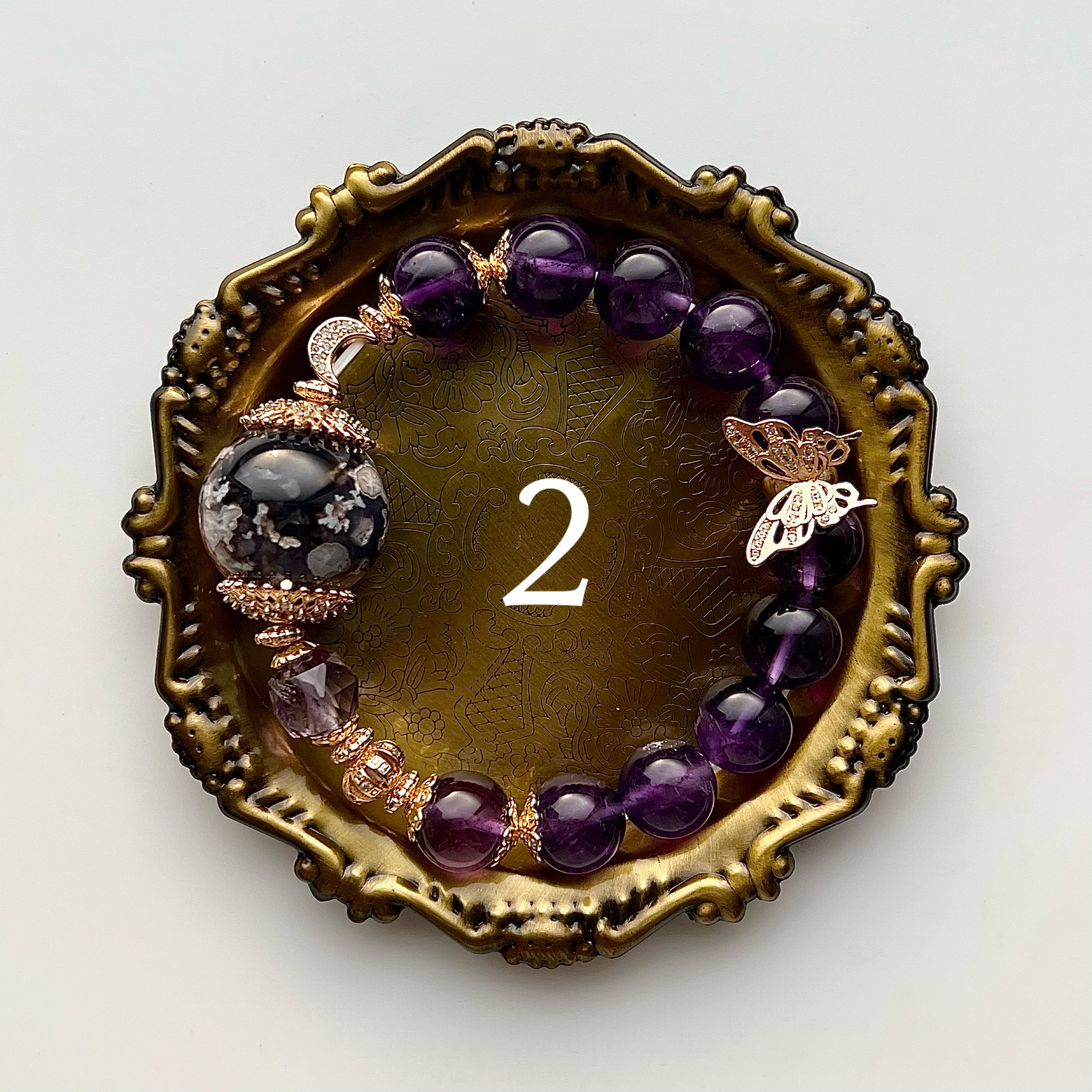 ブレス部分は宵の入りの空に見立てたアメジストを使用