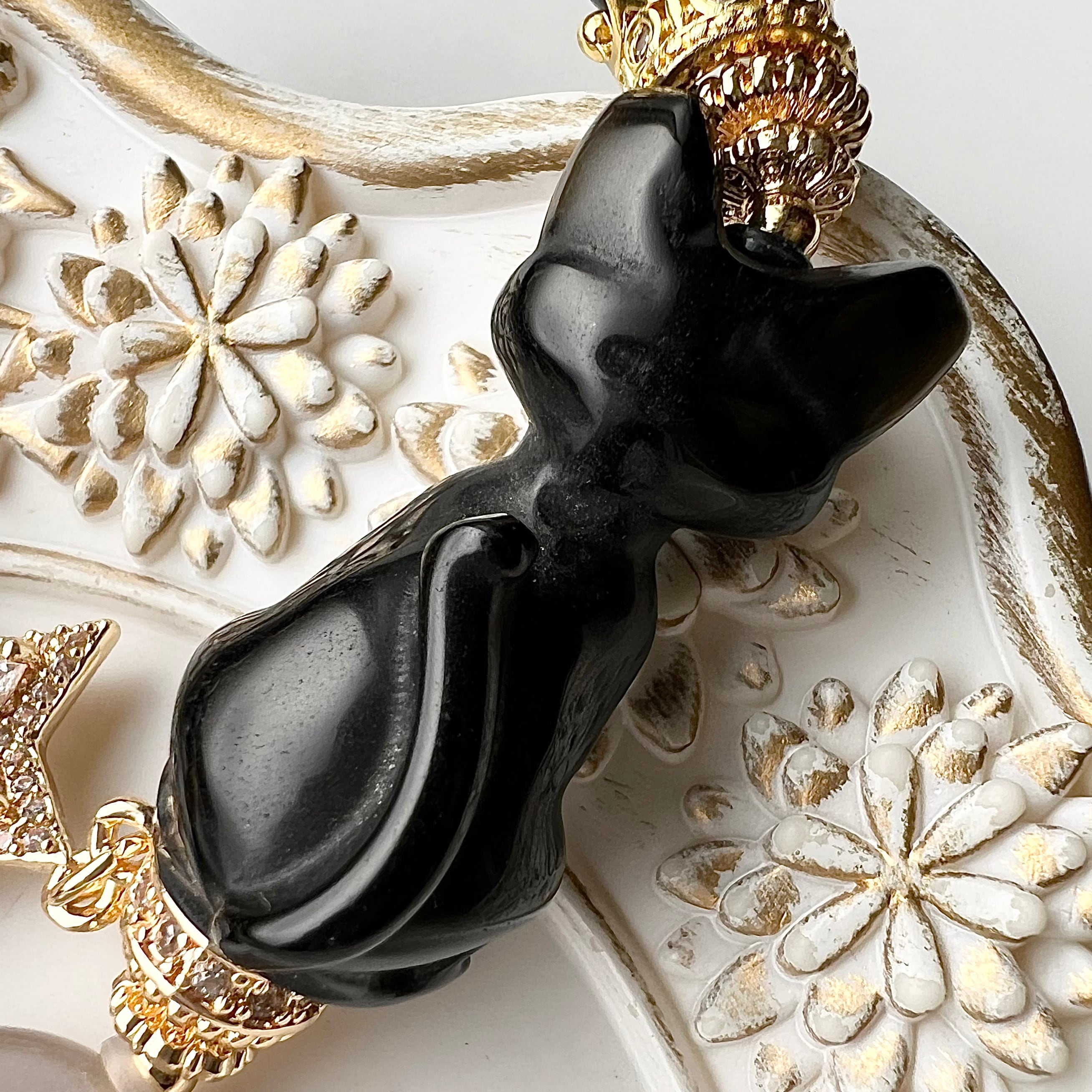 オブシディアン 黒猫 約31×15mm(最大幅)