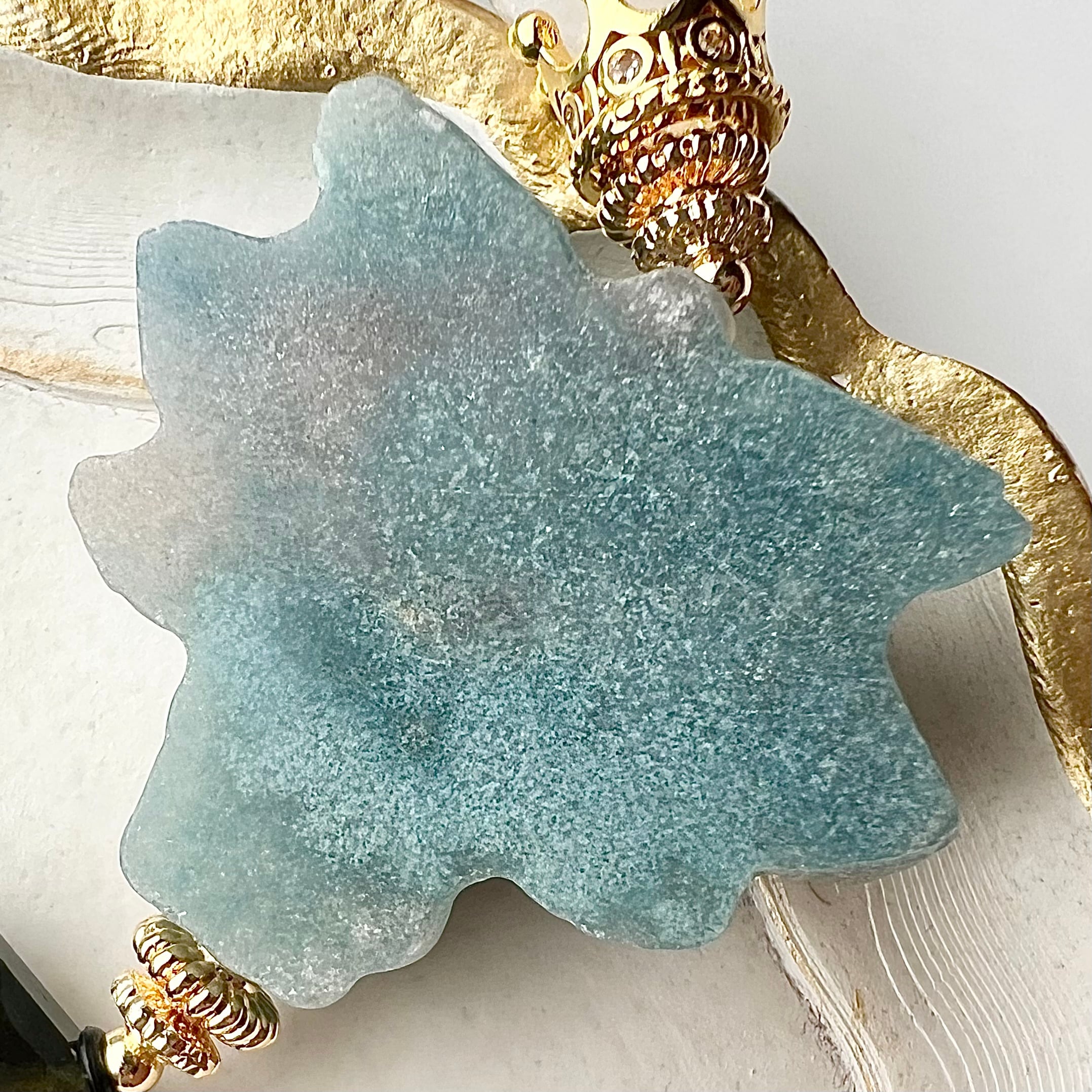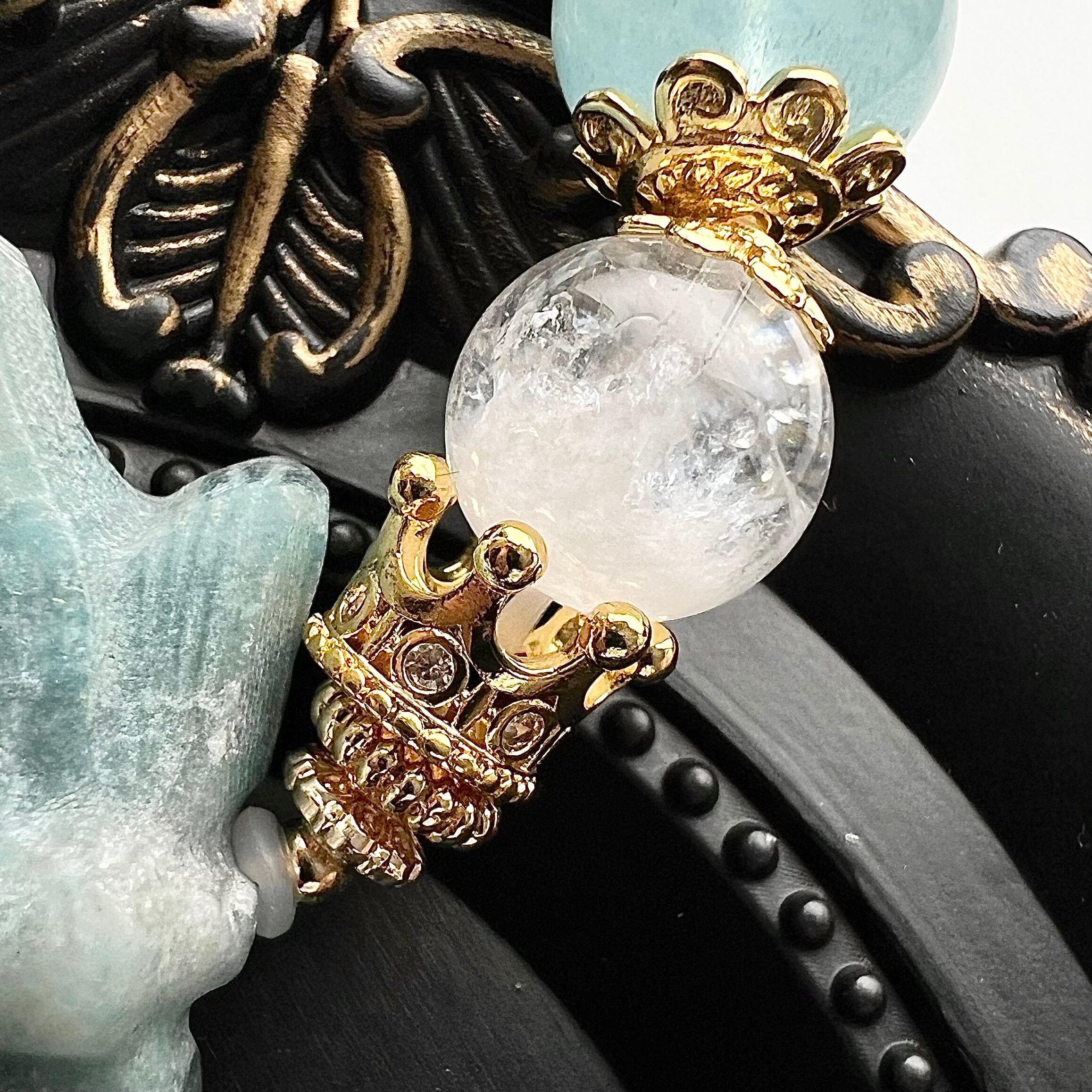 そして白い雲を閉じ込めたようなホワイトガーデンクォーツも一粒、王冠と一緒に天使の頭上に載せました