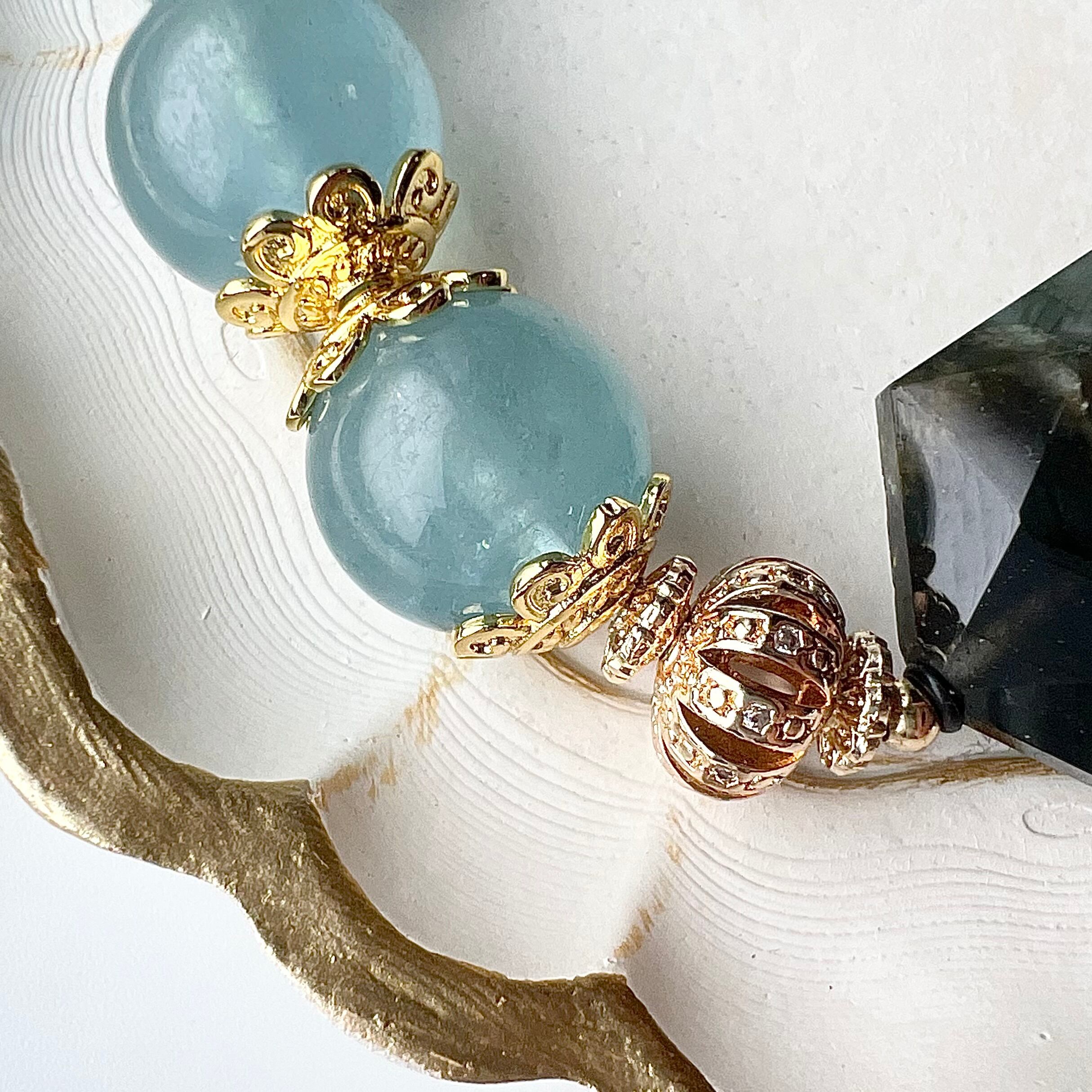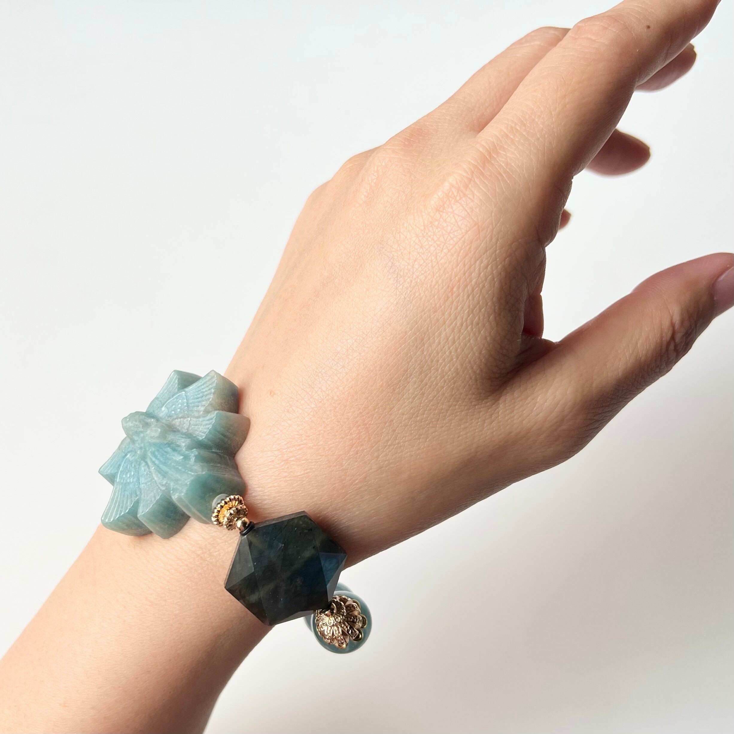 トロレアイト 天使 ラブラドライト 六芒星 アクアマリン 天然石 ブレスレット