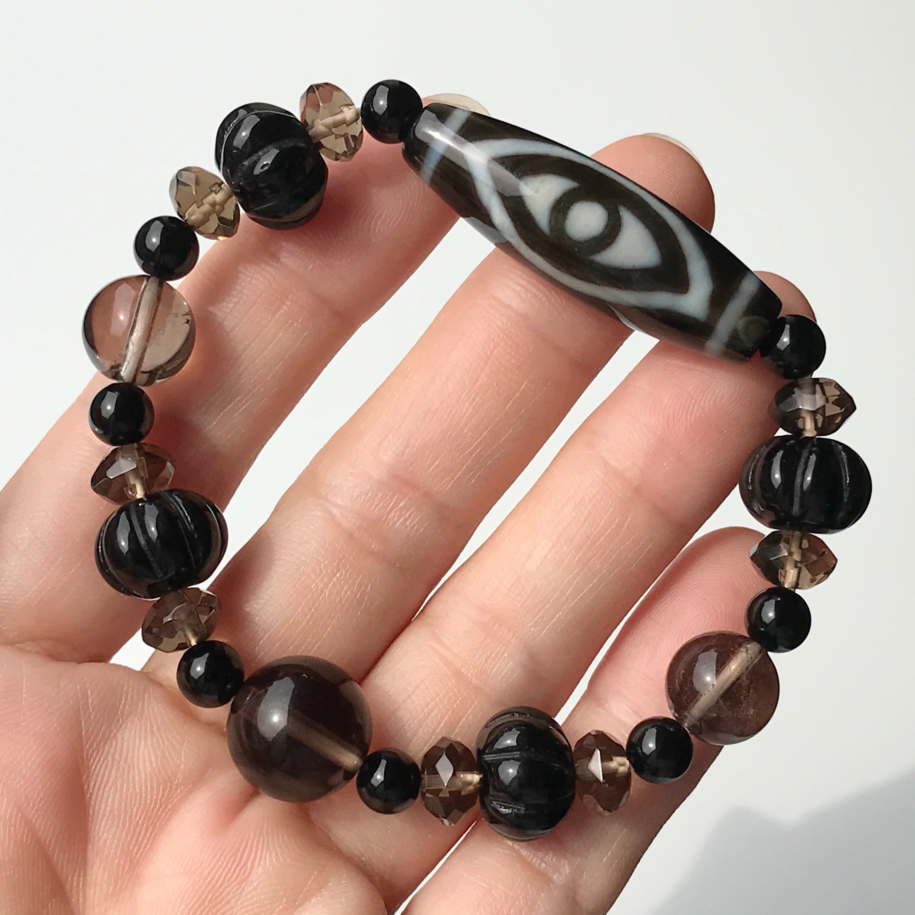 仏眼天珠 至純天珠 オニキス スモーキークォーツ 天然石 ブレスレット