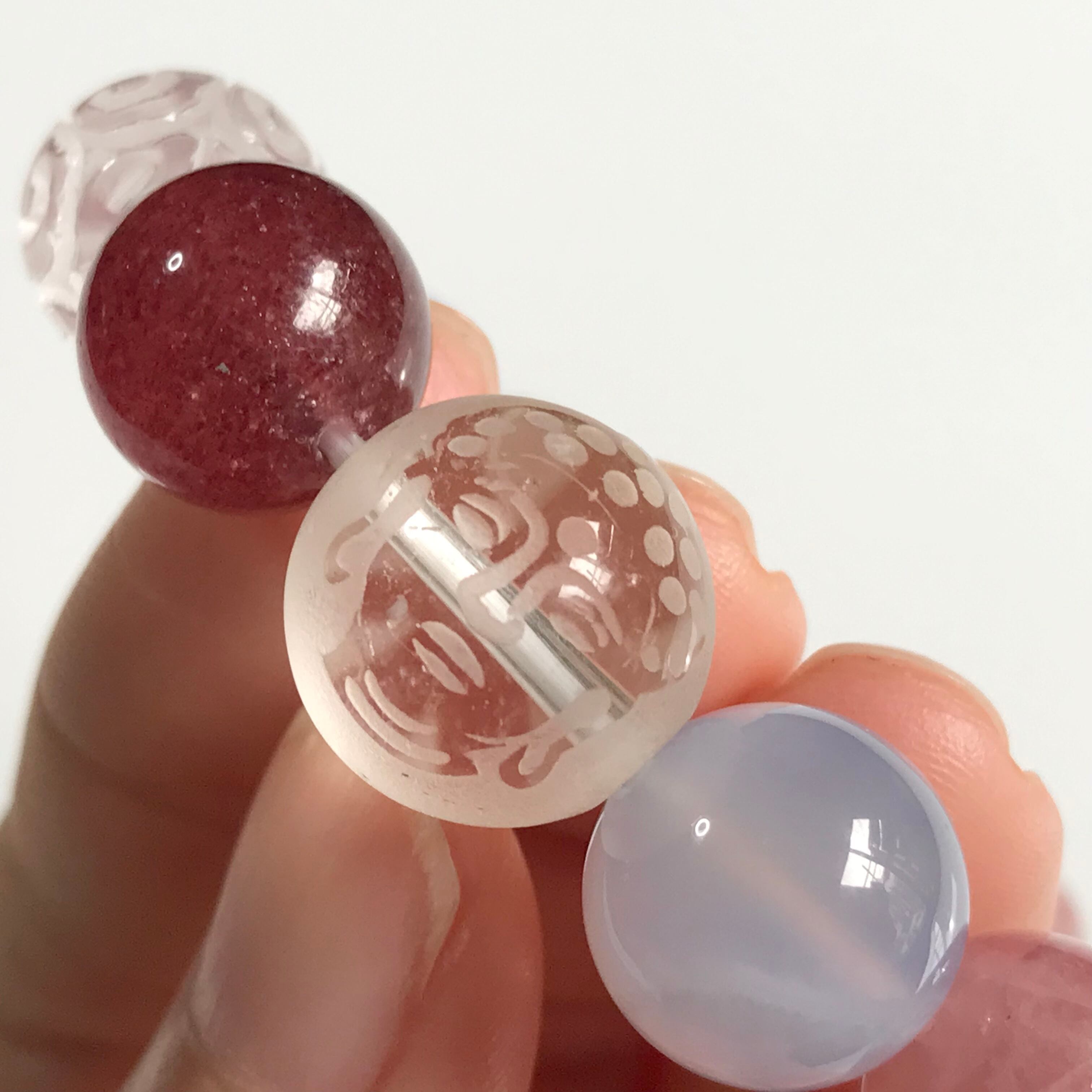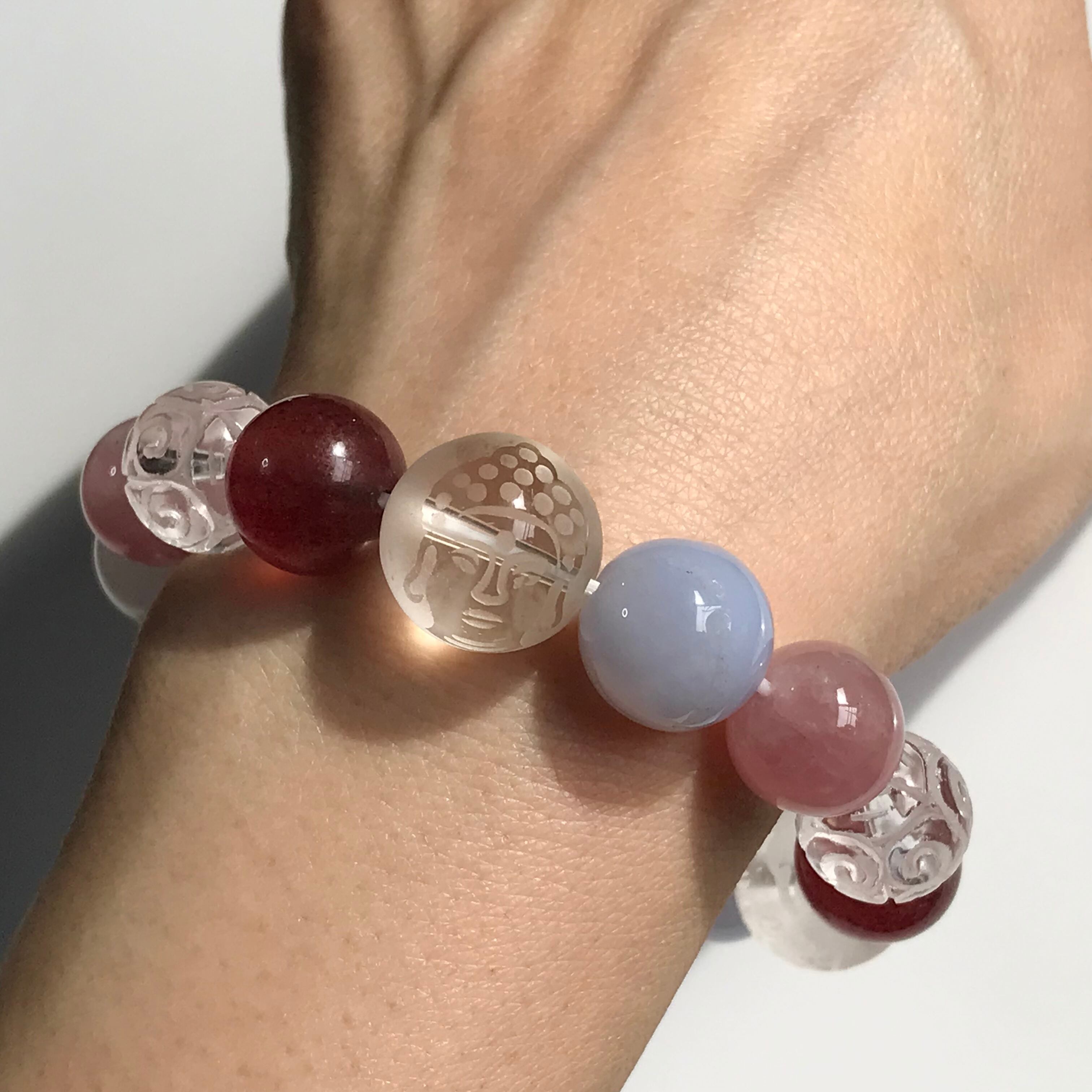 水晶 仏陀 回紋珠 ストロベリークォーツ ディープローズクォーツ 天然石 ブレスレット