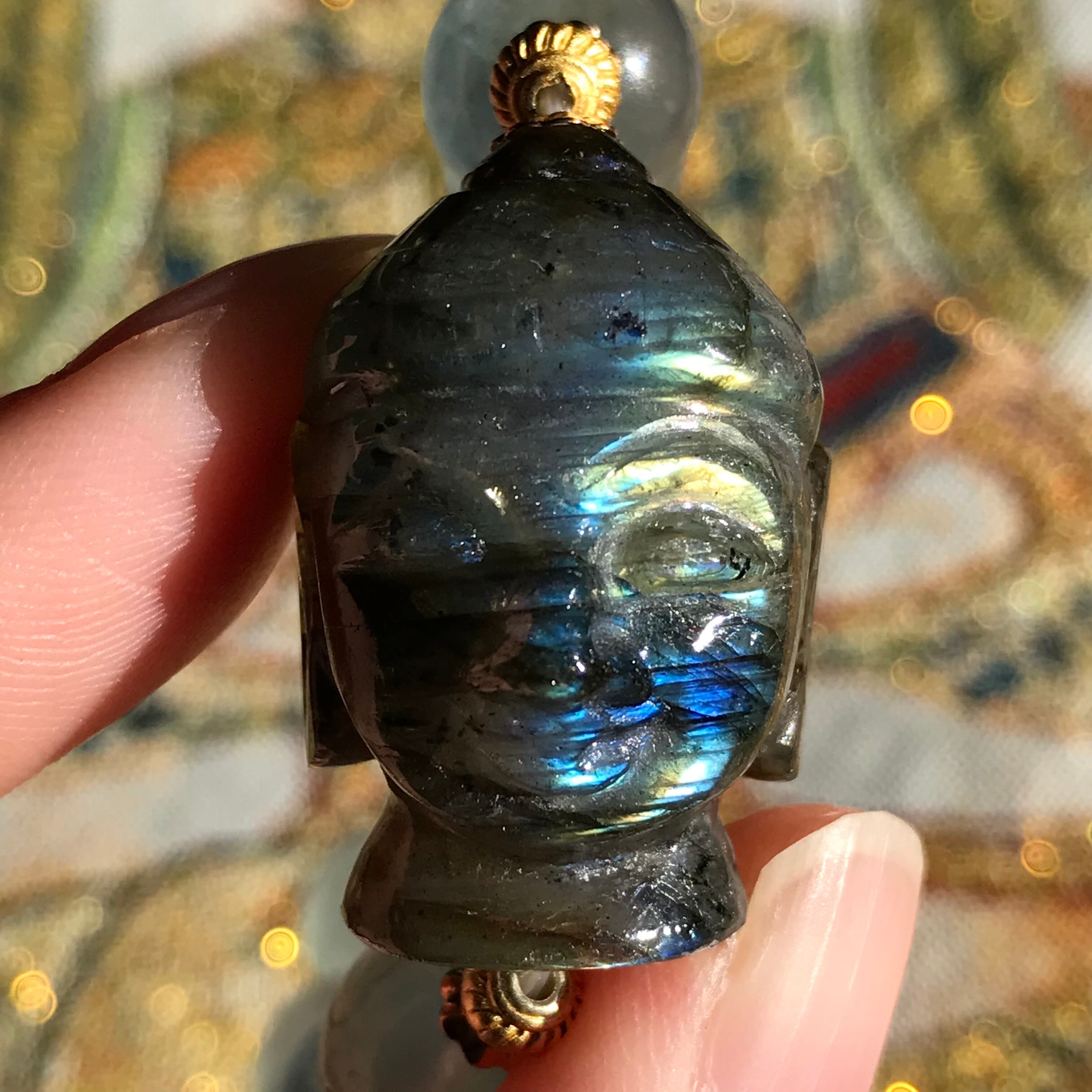 ラブラドライト仏頭彫刻 約30×20mm(最大幅)