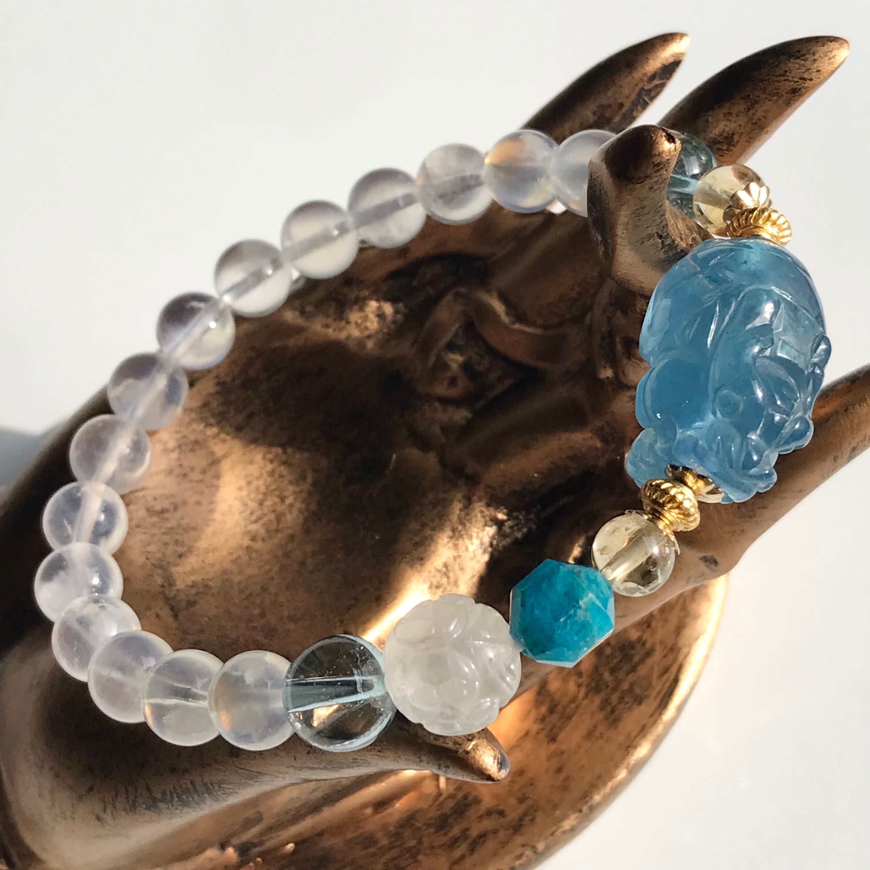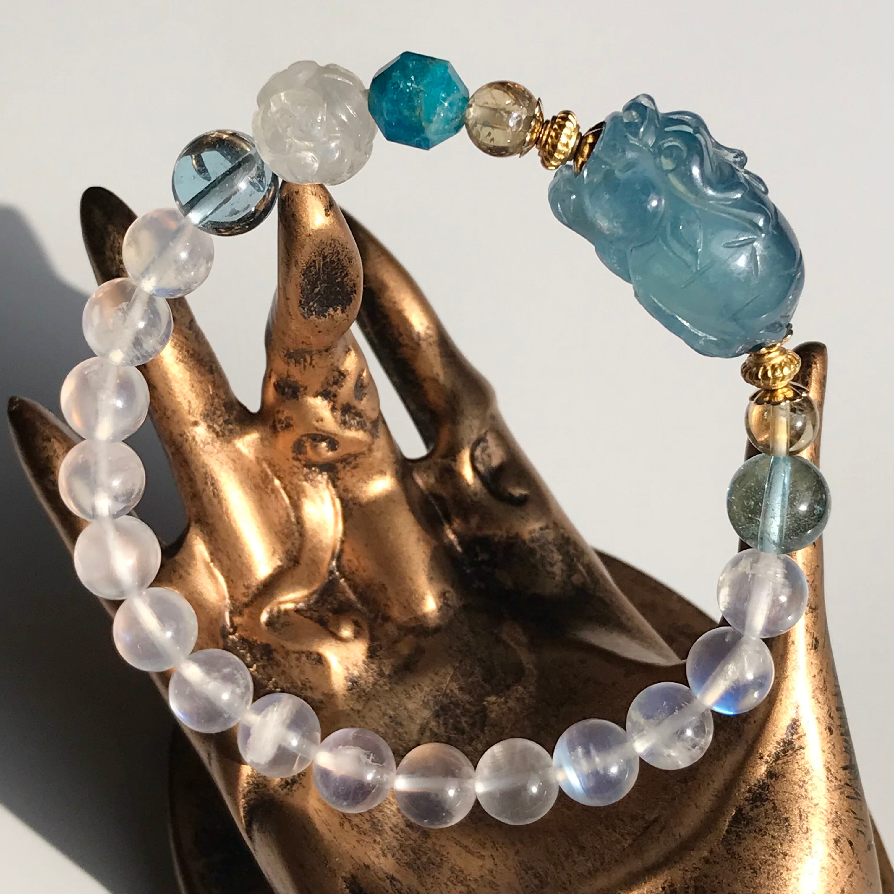龍亀 アクアマリン ムーンストーン ブルートパーズ 回紋珠 天然石 ブレスレット