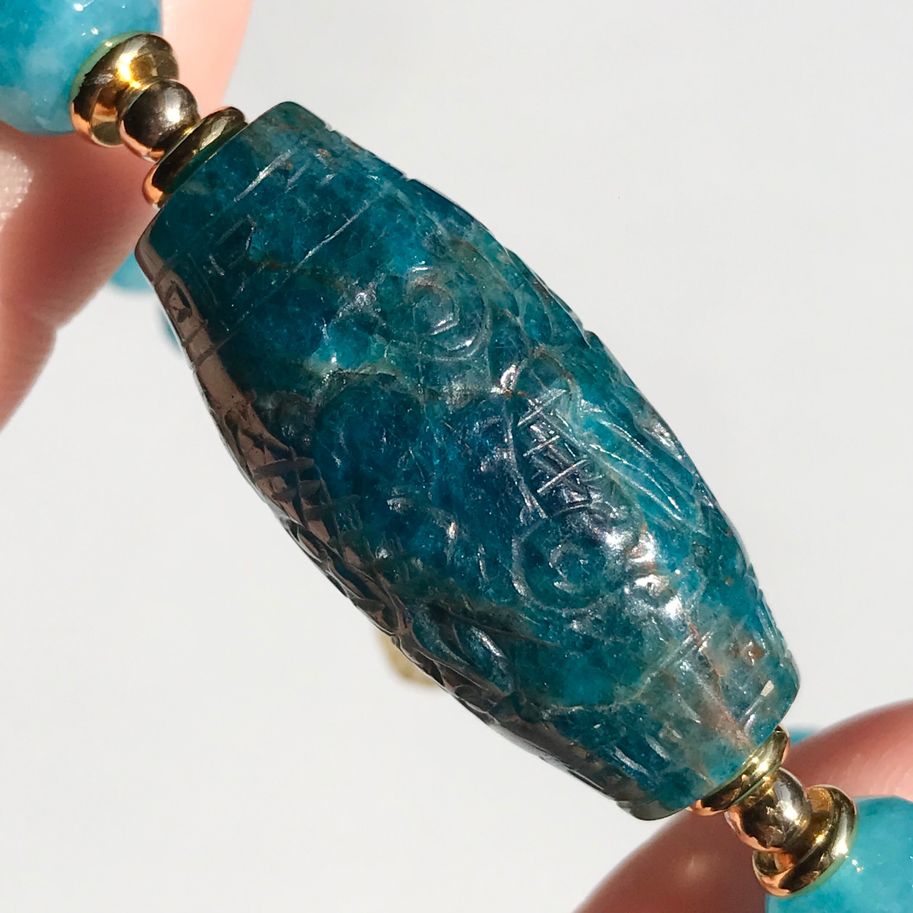 龍彫り アパタイト レモンクォーツ 蓮花 彫刻 天然石 ブレスレット