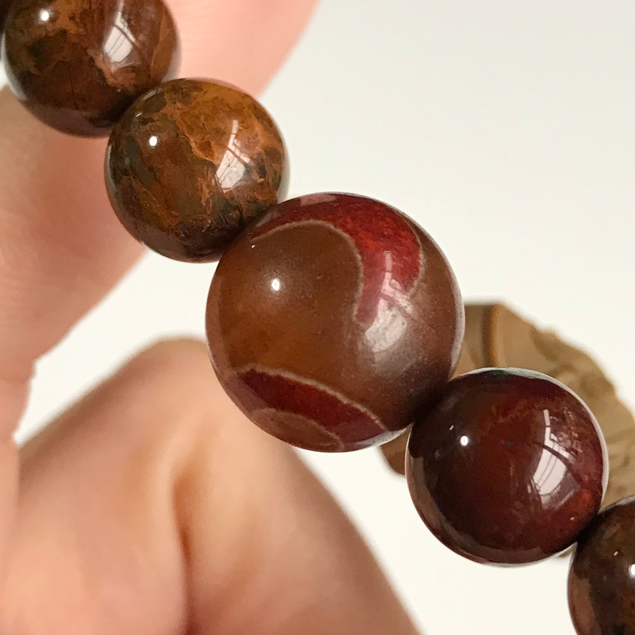 アラシャン瑪瑙のガネーシャとインペリアルジャスパーのブレスです、アクセントとして丸玉の日月星天珠を反対側にあしらいました