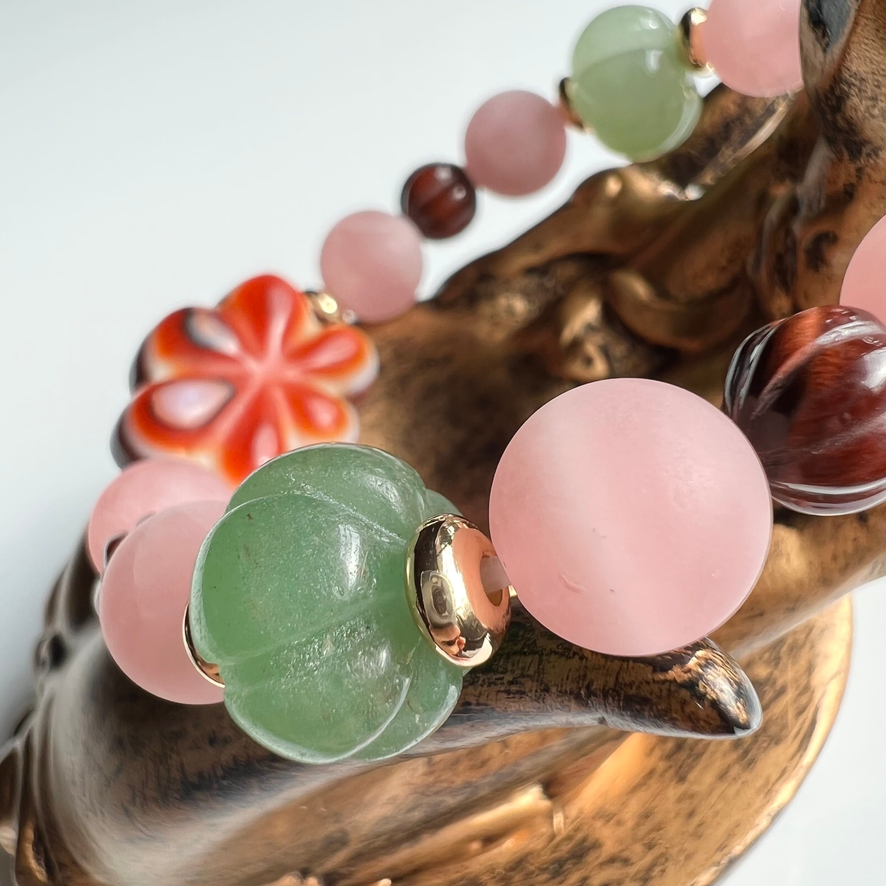 美味しそうな桜餅カラーの可愛いブレスができました、女性に人気のある2つの天珠を前後にあしらってみました